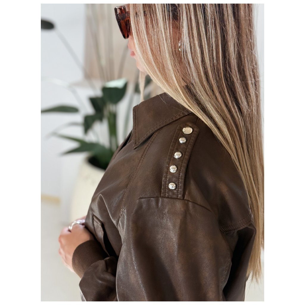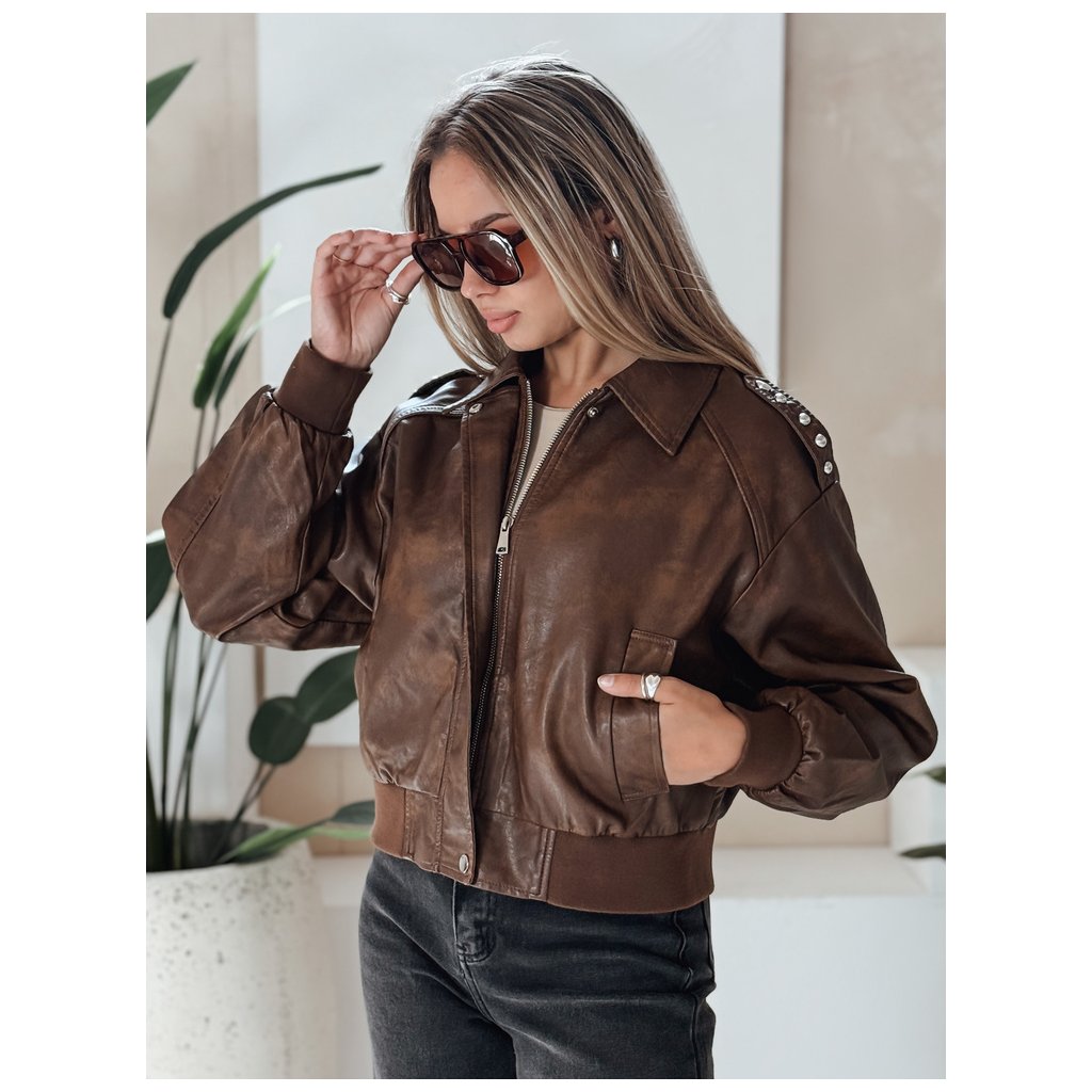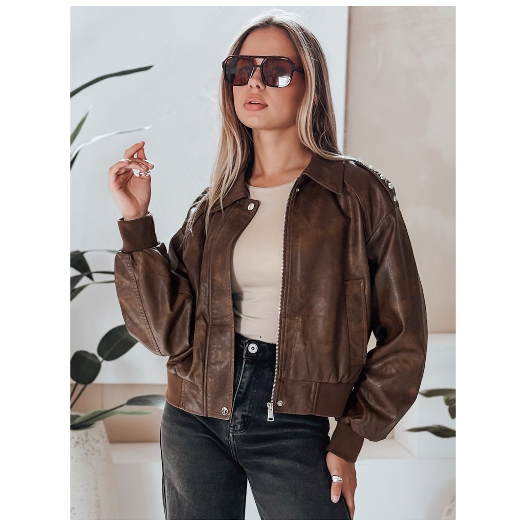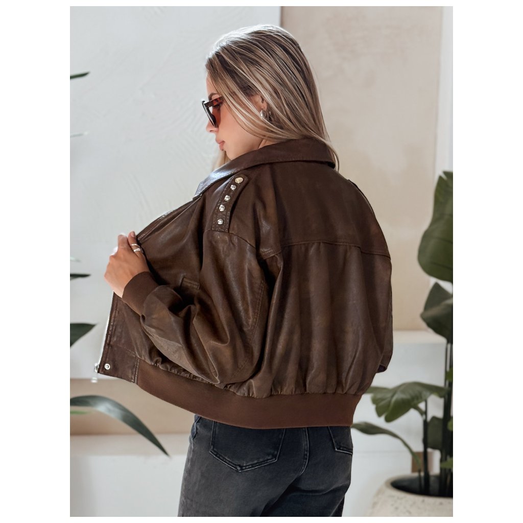 Dámska kožená bomber bunda hnedá Dstreet TY5219