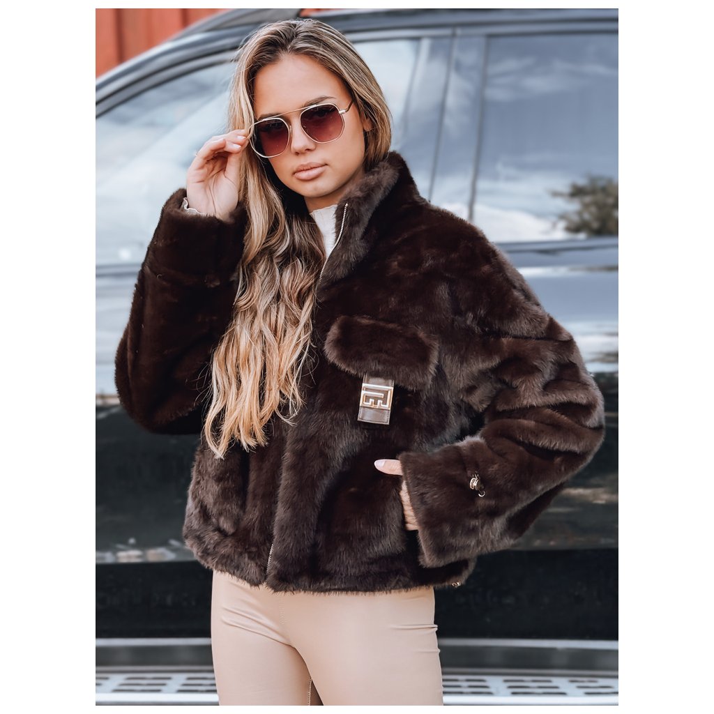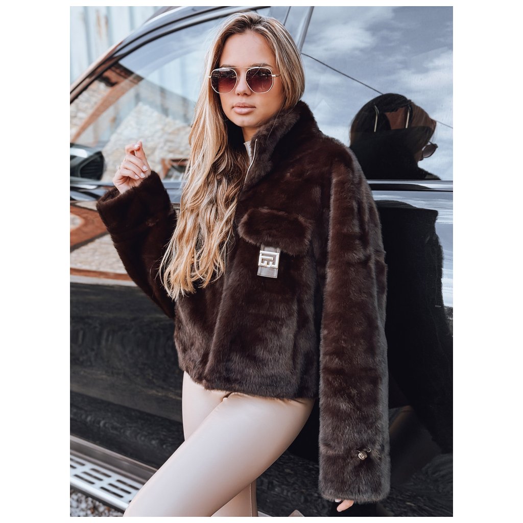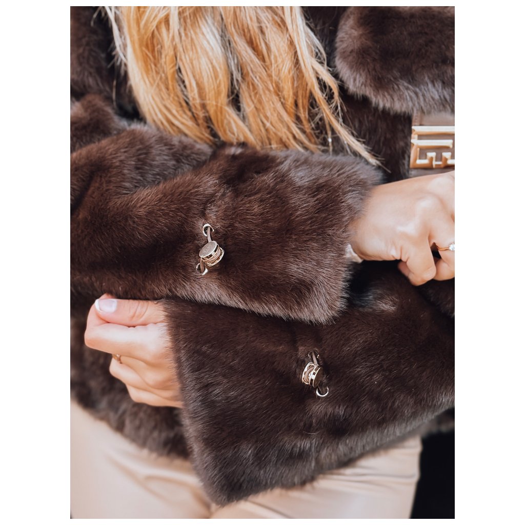Dámsky krátky kabát z umelej kožušiny TY5241 Hnedý