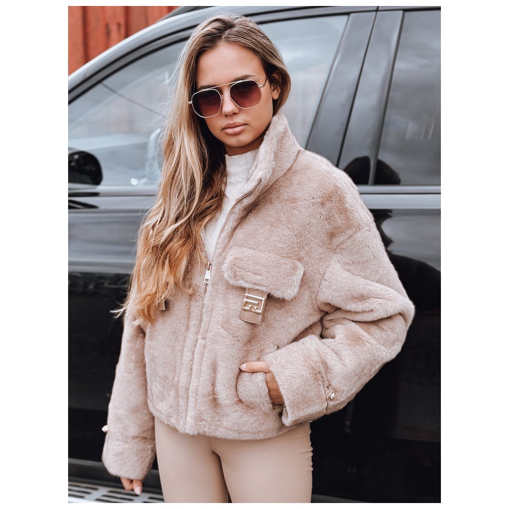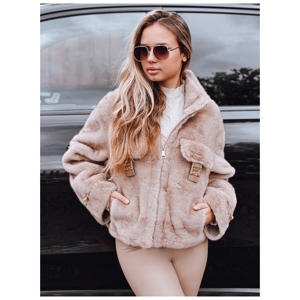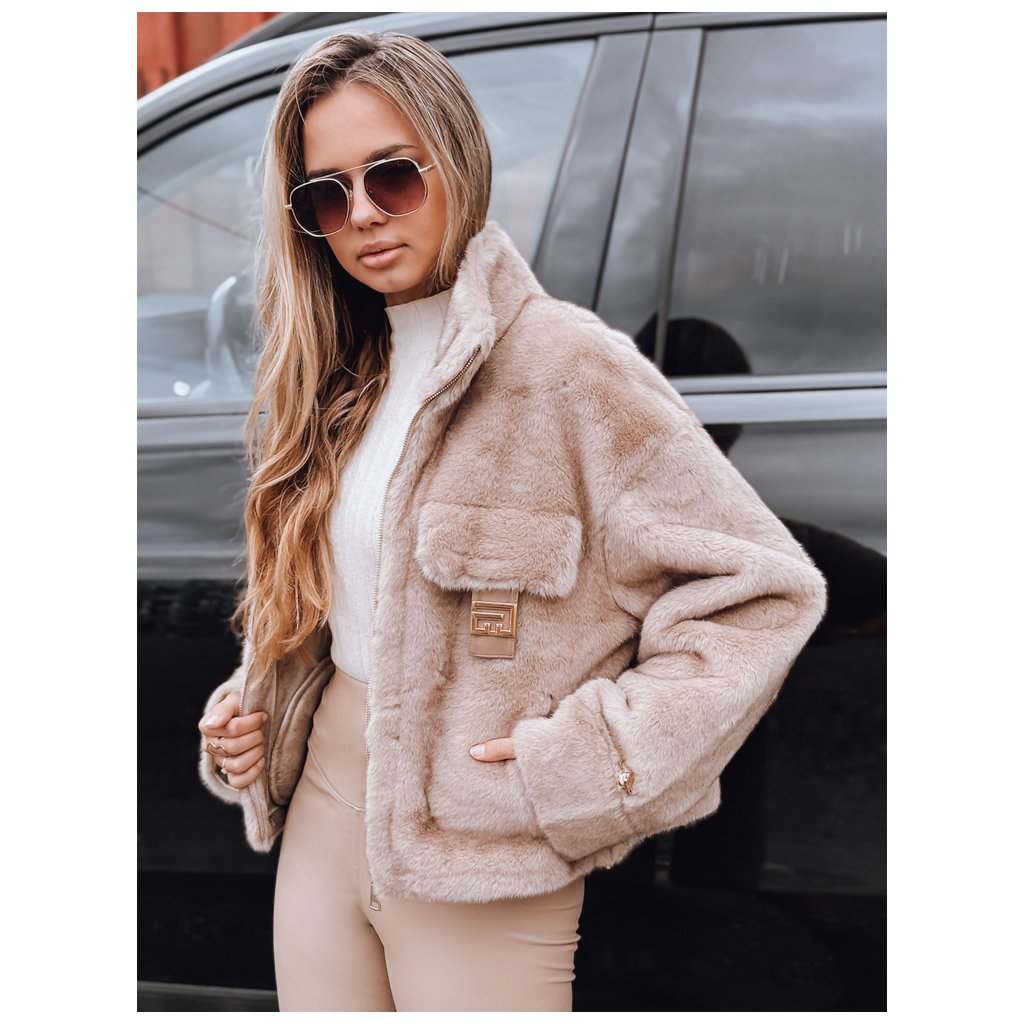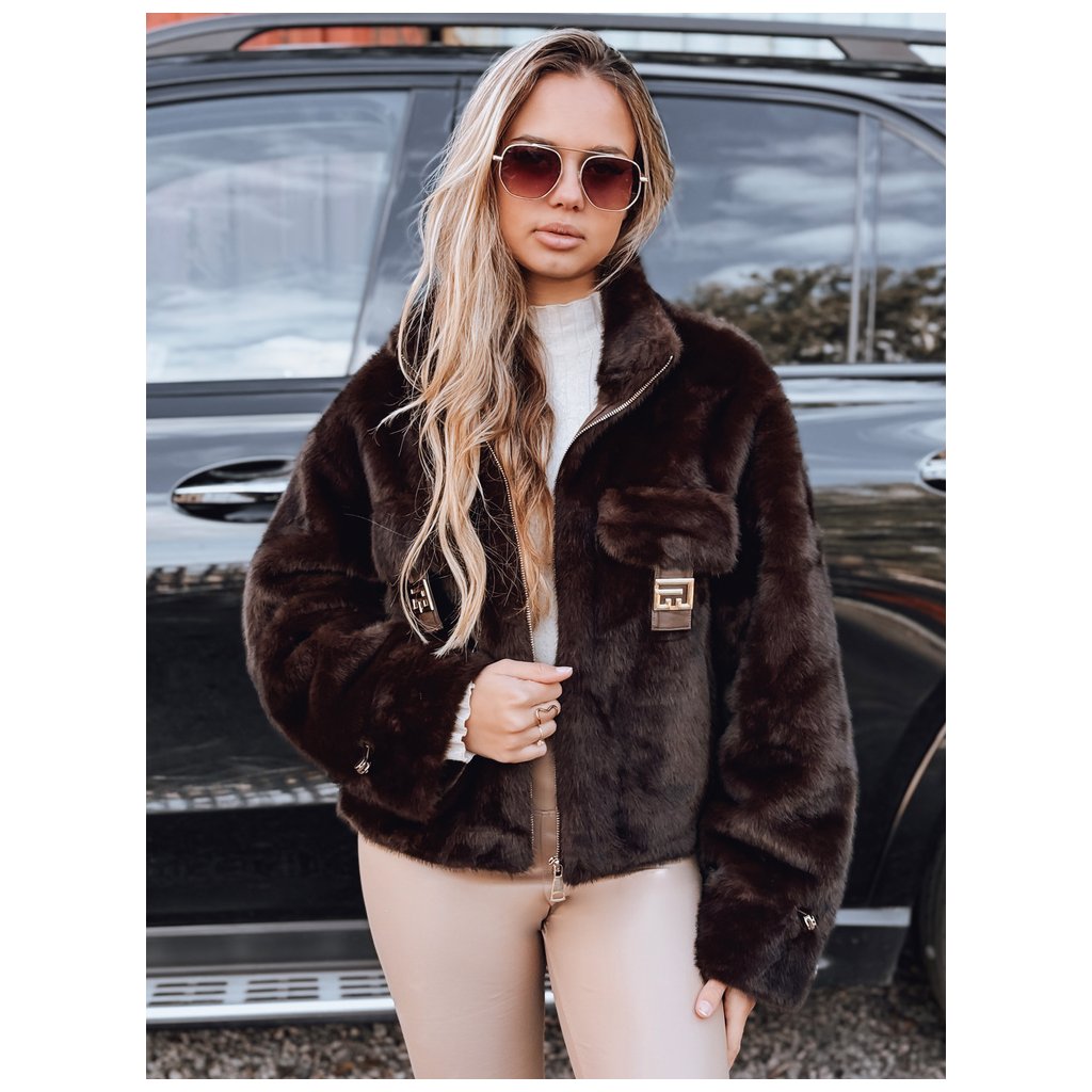 Dámsky krátky kabát z umelej kožušiny TY5241 Hnedý