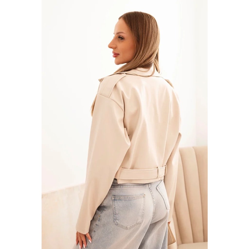 Moderná dámska bunda s krátkym strihom je návrhom pre ženy, ktoré ocenia mestský štýl a pohodlie. Model je vyrobený z hladkého, ľahko tuhšieho materiálu, skvele sa prispôsobuje a priťahuje pozornosť minimalistickým dizajnom. Bunda má efektný golier, ozdobné gombíky, zapínanie na zips a opasok v páse, ktorý umožňuje mierne prispôsobenie postave.