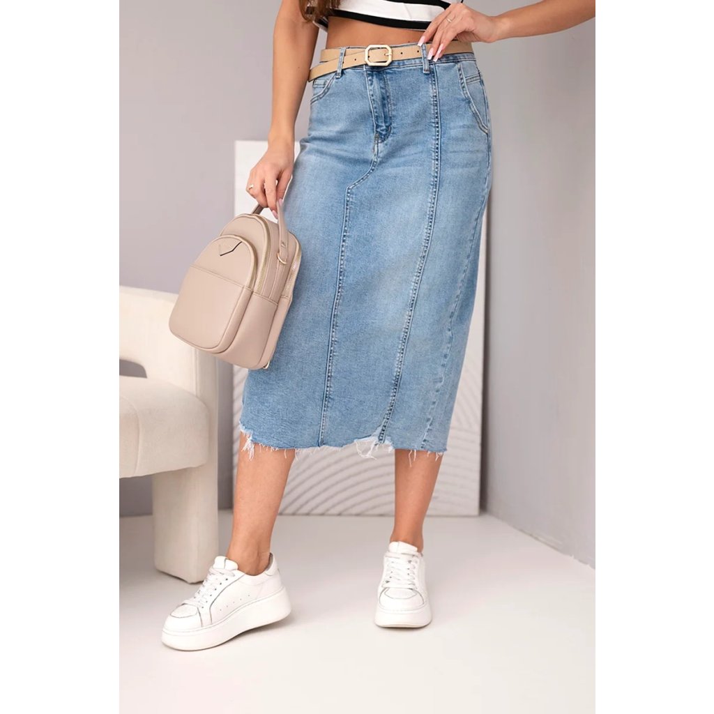 Dámska midi džínsová sukňa s rázporkom