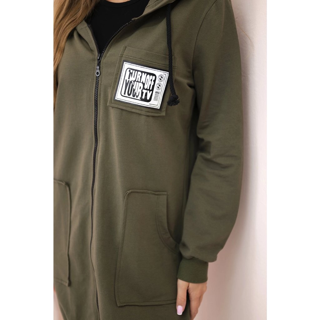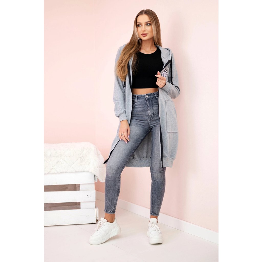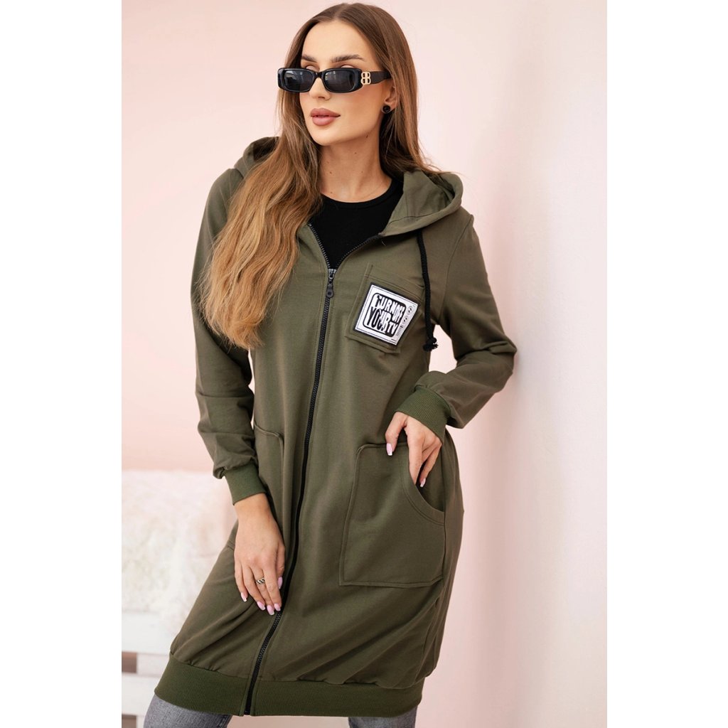 Táto dlhšia dámska mikina s kapucňou je ideálnou voľbou na chladnejšie dni – spája pohodlie, funkčnosť a módny mestský štýl. Je ušitá z mäkkej bavlny s prídavkom elastanu, čo zaisťuje pohodlie pri nosení a voľnosť pohybu po celý deň. Mikina sa zapína na praktický zips a kapucňa so šnúrkami jej dodáva ležérny charakter. Veľké našité vrecká vpredu sú nielen štýlové, ale aj veľmi funkčné. Široké lemy na spodnom okraji a na rukávoch zaisťujú, že mikina dobre sedí a chráni pred chladom.