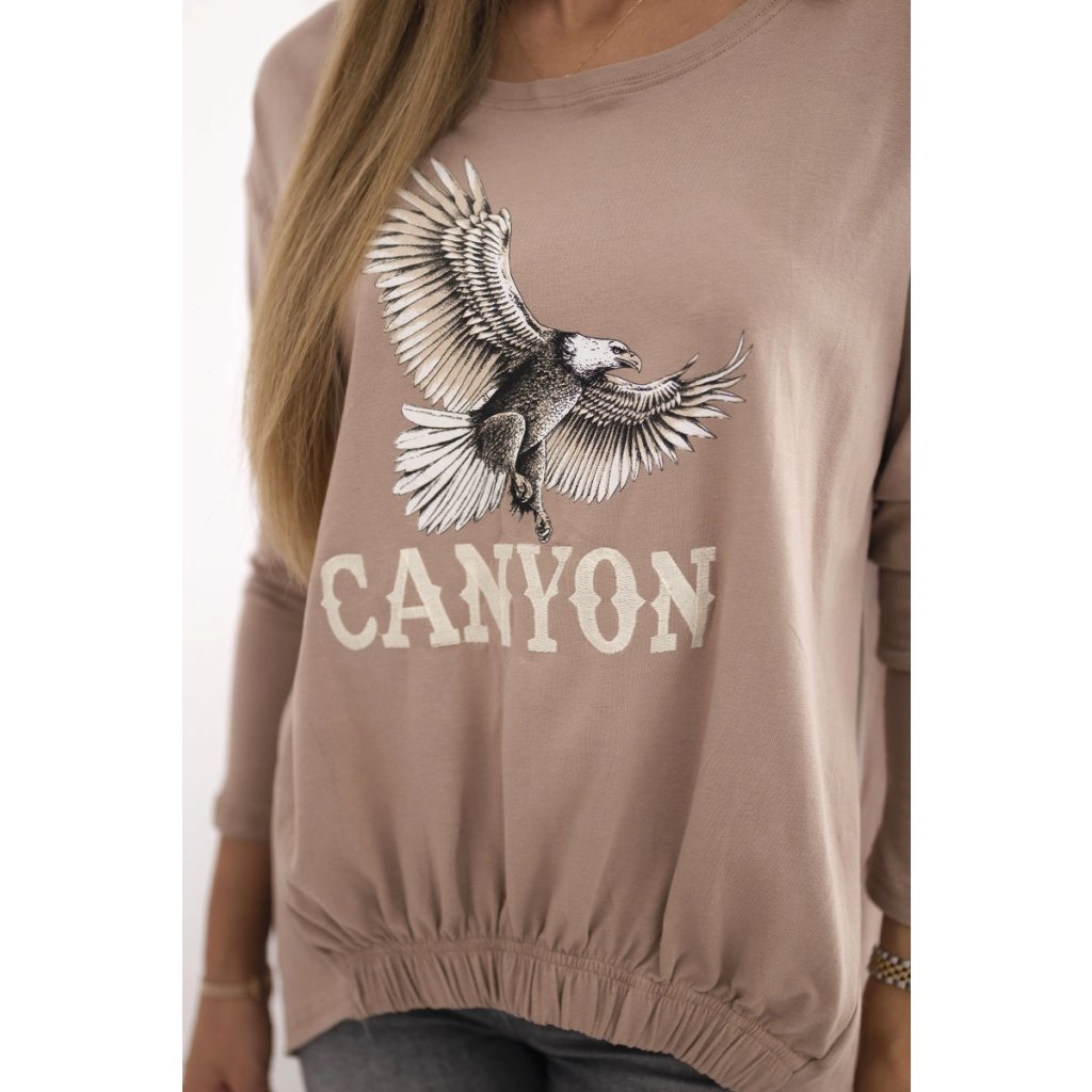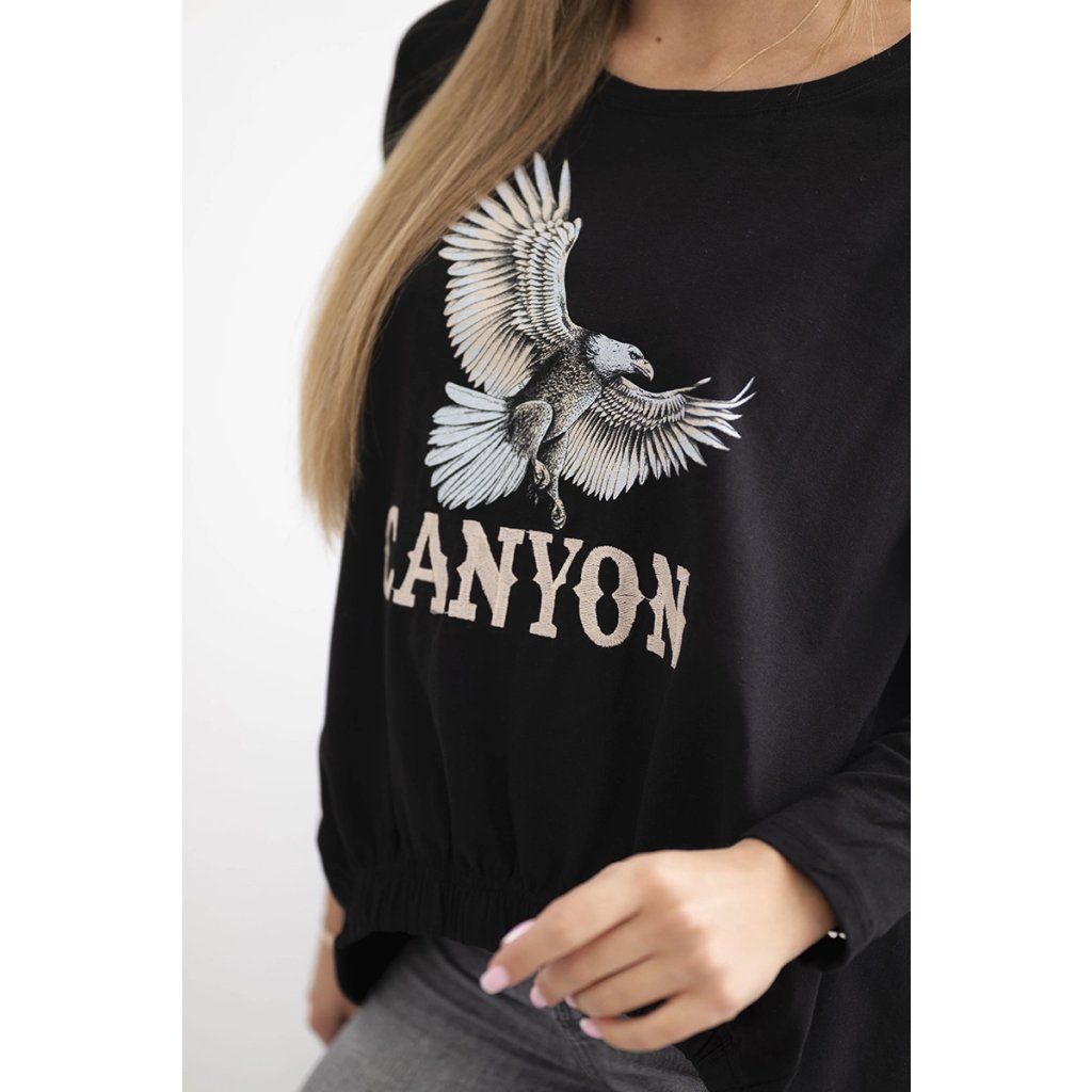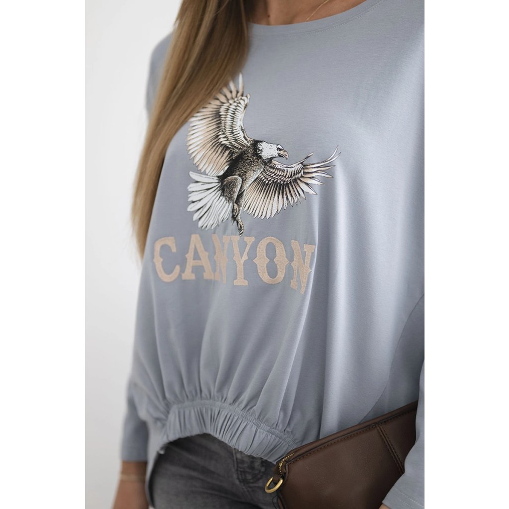 Vyniknite v mestskej džungli vďaka tejto štýlovej dámskej mikine s potlačou orla a nápisom „CANYON“. Mikina priťahuje pozornosť nielen originálnym motívom, ale aj výnimočným strihom – má predĺžený zadný diel a elastické stiahnutie v páse, ktoré krásne tvaruje postavu. Vyrobená z vysoko kvalitnej bavlny s prímesou elastanu, zaručuje pohodlie a voľnosť pohybu každý deň. Je to ideálna voľba pre ženy, ktoré si cenia pohodlie v módnom prevedení. Skvelá na prechádzku, nákupy alebo stretnutie s priateľmi. Materiál je príjemný na dotyk a oversize strih sa hodí ku každému outfitu – či už k džínsom alebo legínam.
