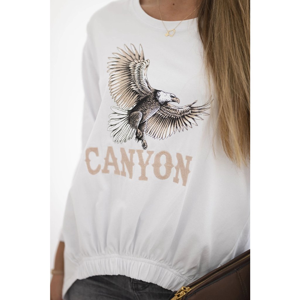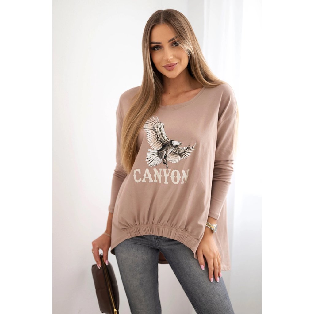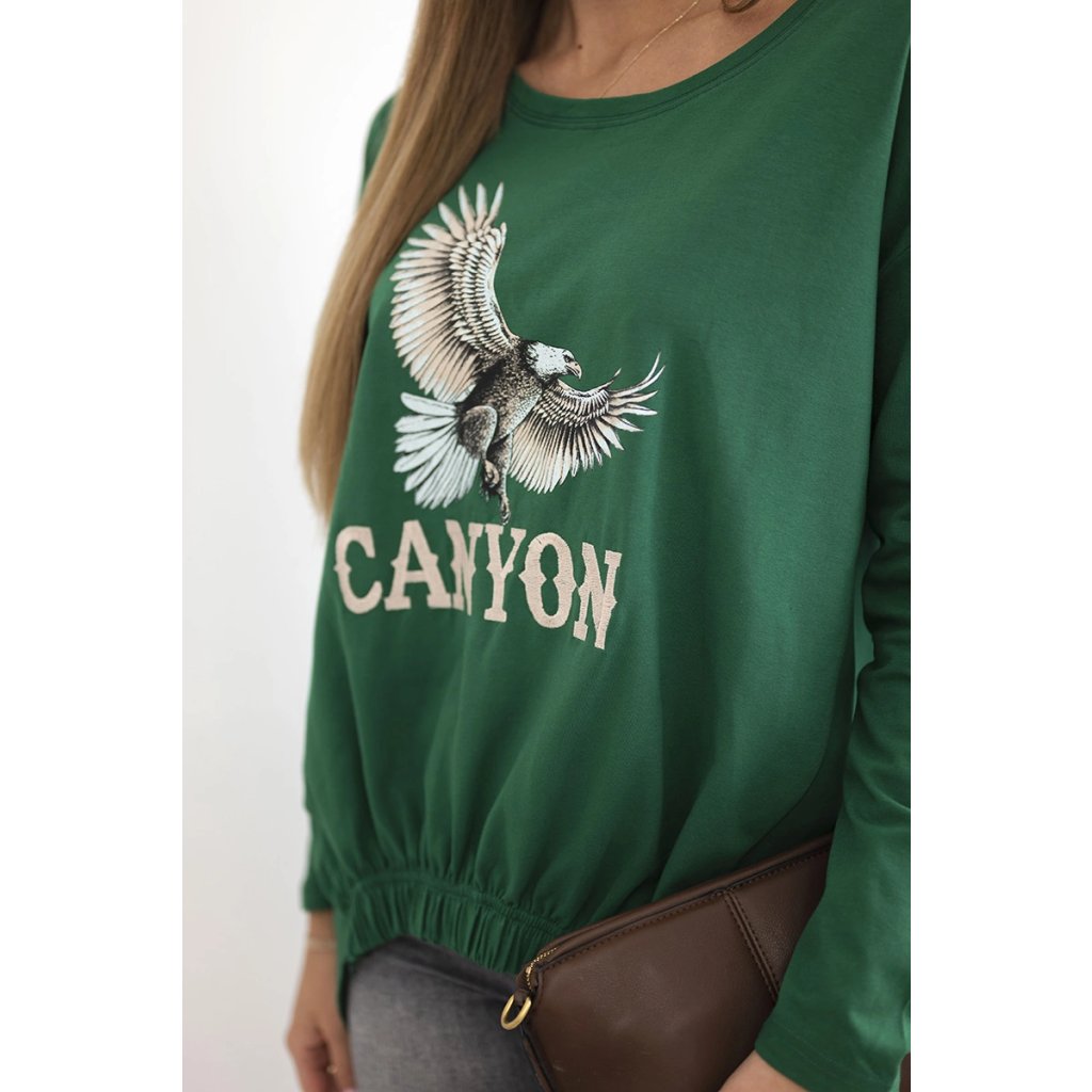 Vyniknite v mestskej džungli vďaka tejto štýlovej dámskej mikine s potlačou orla a nápisom „CANYON“. Mikina priťahuje pozornosť nielen originálnym motívom, ale aj výnimočným strihom – má predĺžený zadný diel a elastické stiahnutie v páse, ktoré krásne tvaruje postavu. Vyrobená z vysoko kvalitnej bavlny s prímesou elastanu, zaručuje pohodlie a voľnosť pohybu každý deň. Je to ideálna voľba pre ženy, ktoré si cenia pohodlie v módnom prevedení. Skvelá na prechádzku, nákupy alebo stretnutie s priateľmi. Materiál je príjemný na dotyk a oversize strih sa hodí ku každému outfitu – či už k džínsom alebo legínam.