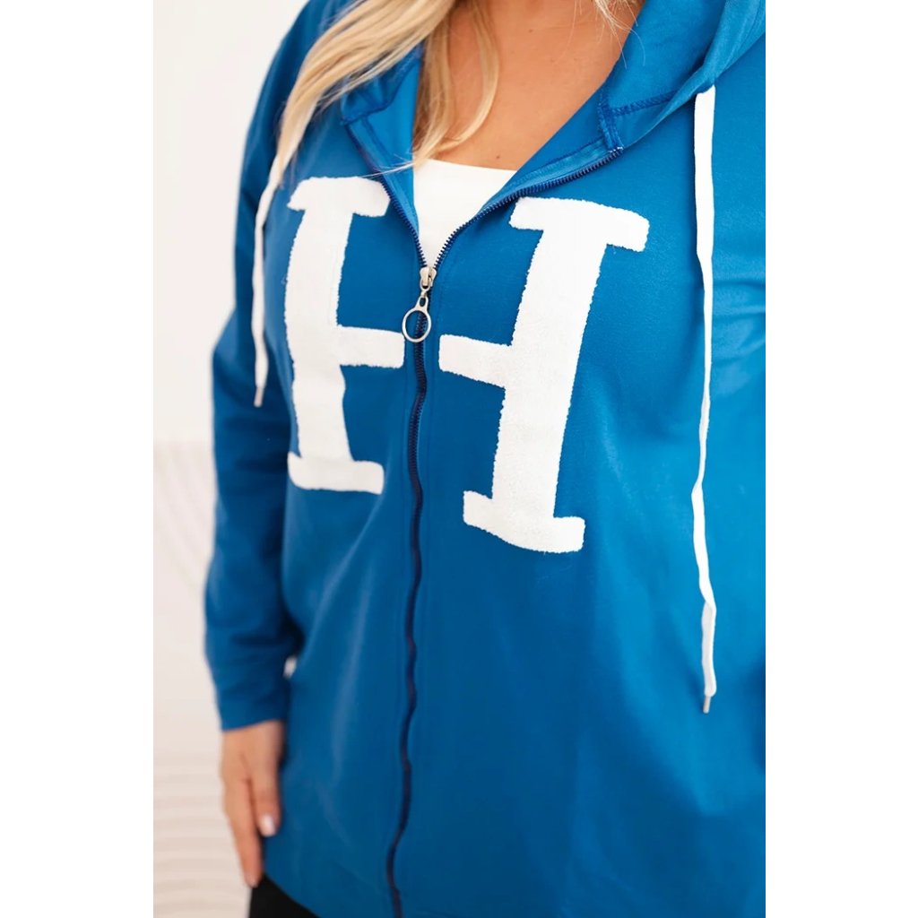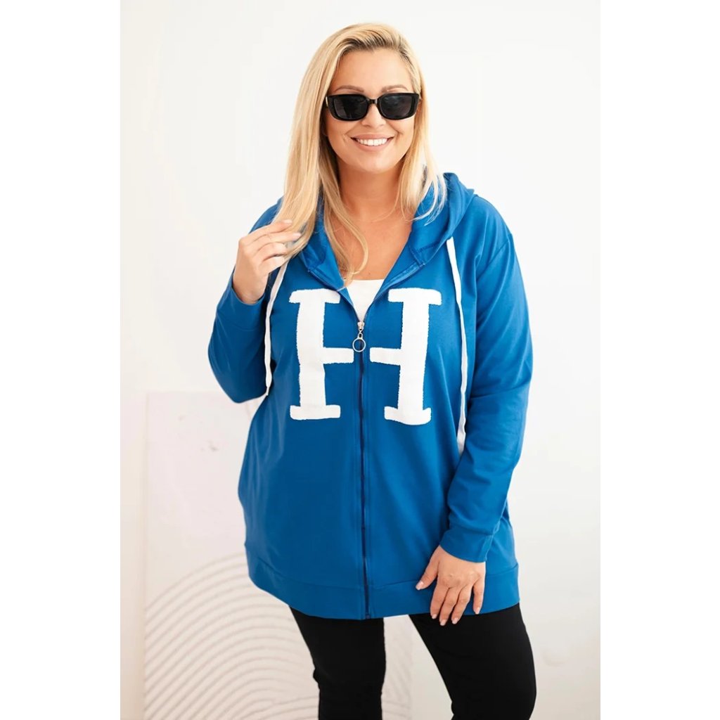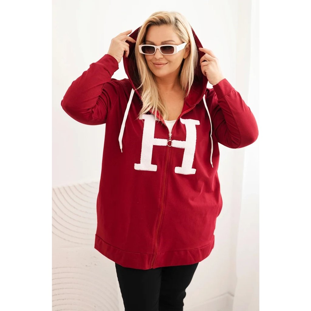 Dámska mikina Plus Size s kapucňou a ozdobným písmenom „H” na prednej strane je kombináciou mestského štýlu a maximálneho komfortu. Pohodlný strih, praktická kapucňa so šnúrkou a zips robia tento model ideálnym ako na každodenné nosenie, tak na prechádzky alebo víkendové výlety.