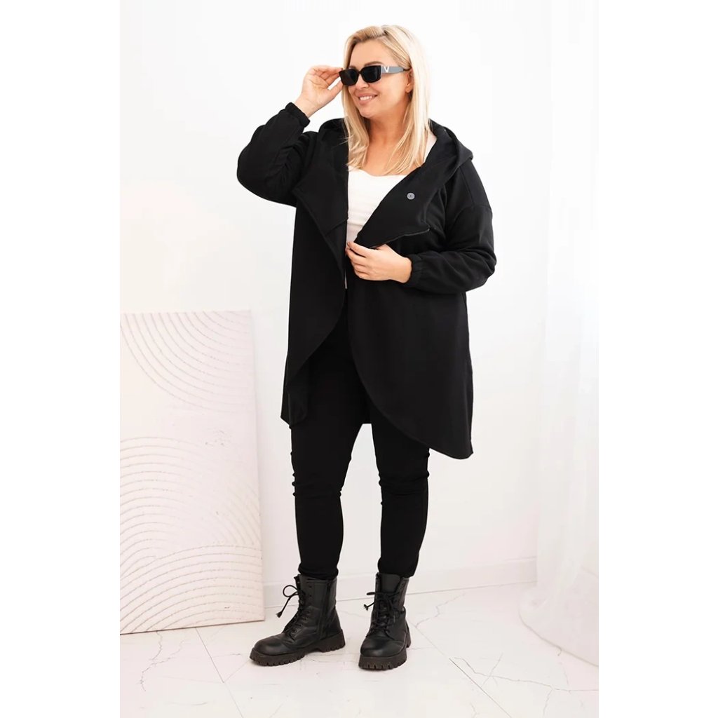 Toto je dámska mikina, ktorá spája pohodlie každodenného nosenia s neotrelým dizajnom! Tento model Plus Size s kapucňou a efektným asymetrickým zipsom je ponukou pre ženy, ktoré majú rady módu s charakterom. Vďaka voľnému strihu sa skvele prispôsobuje postave, zakrýva nedokonalosti a zaisťuje voľnosť pohybu. Pohodlné rukávy zakončené jemnou gumou a dĺžka siahajúca pod boky robia z mikiny ideálny kúsok na chladnejšie dni – na každodenné nosenie, na prechádzku alebo do práce.