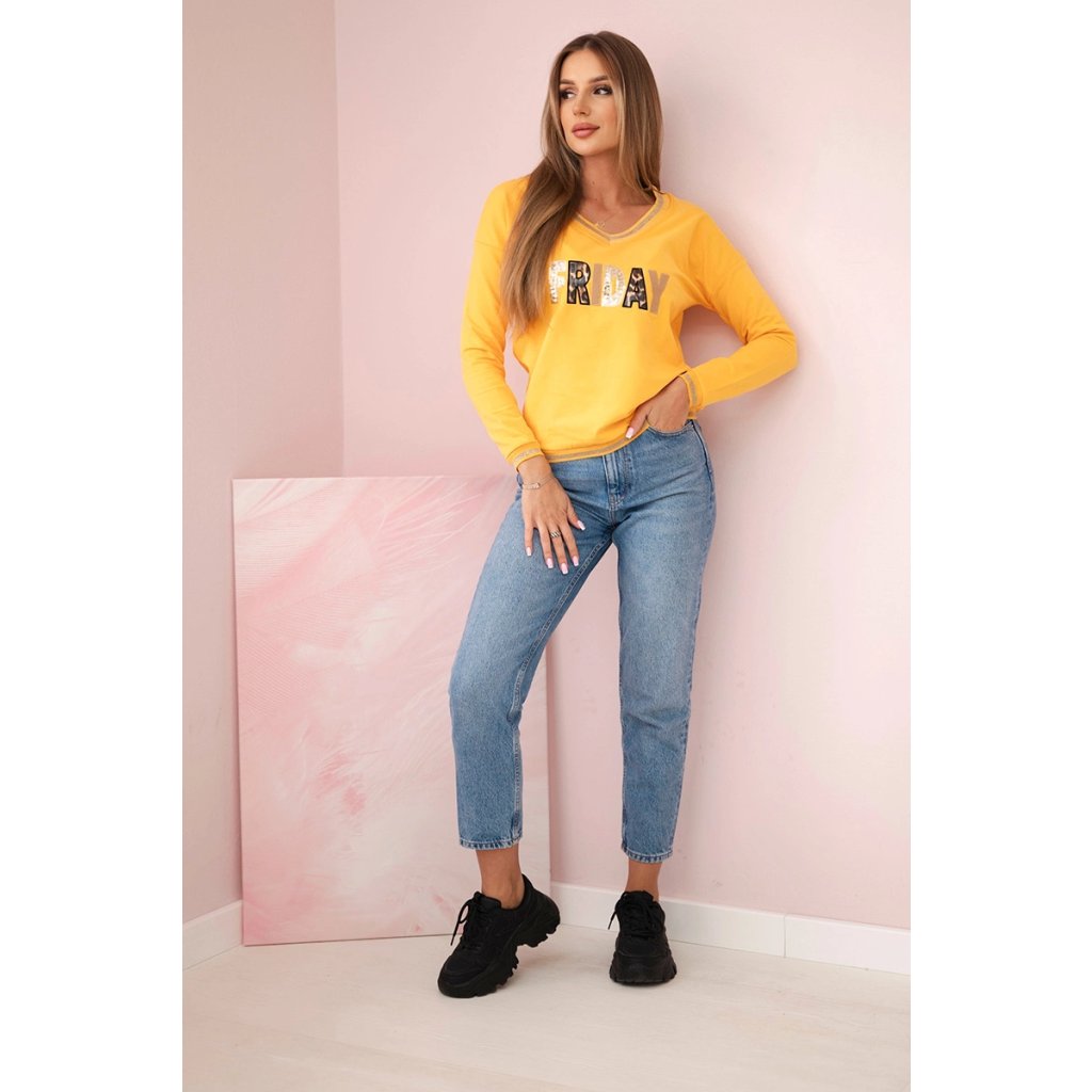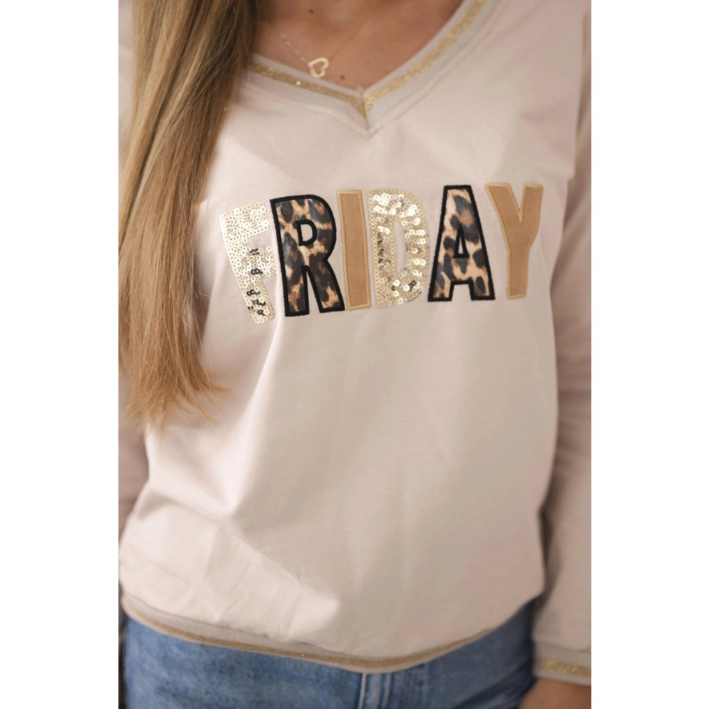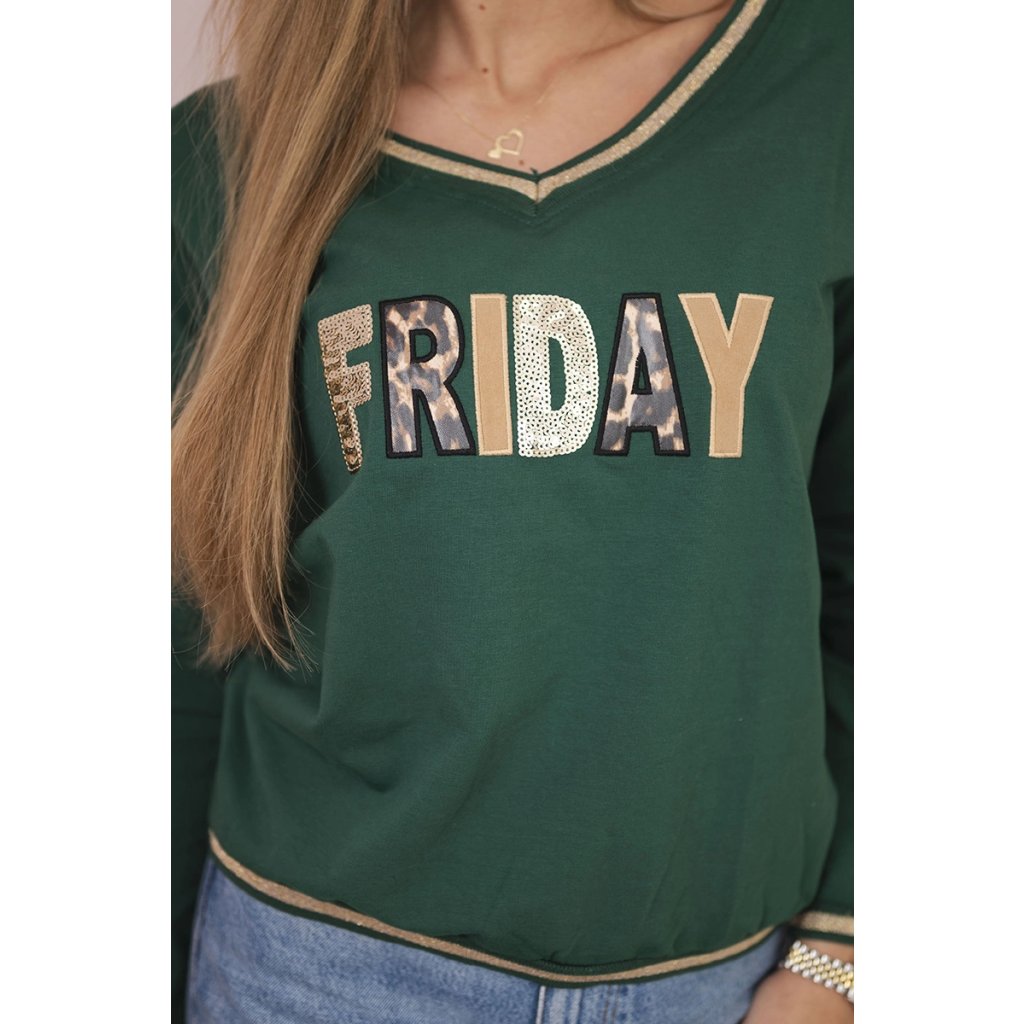 Hľadáte pohodlnú, ale štýlovú mikinu na každý deň? Dámska mikina s nápisom "FRIDAY" je ideálnou voľbou pre ženy, ktoré si cenia štýl a pohodlie. Zaujme trblietavými flitrami a módnym zvieracím vzorom v písmenách, ktoré dodávajú charakter. Výstrih do V a zlaté zakončenie na manžetách a spodnom leme jej dodávajú jedinečný vzhľad. Ideálna na každodenné nosenie, do práce, na nákupy alebo víkendový výlet – všade tam, kde chcete vyzerať štýlovo a cítiť sa pohodlne. Veľkosť je univerzálna a vhodná pre ženy s veľkosťami S, M alebo L.