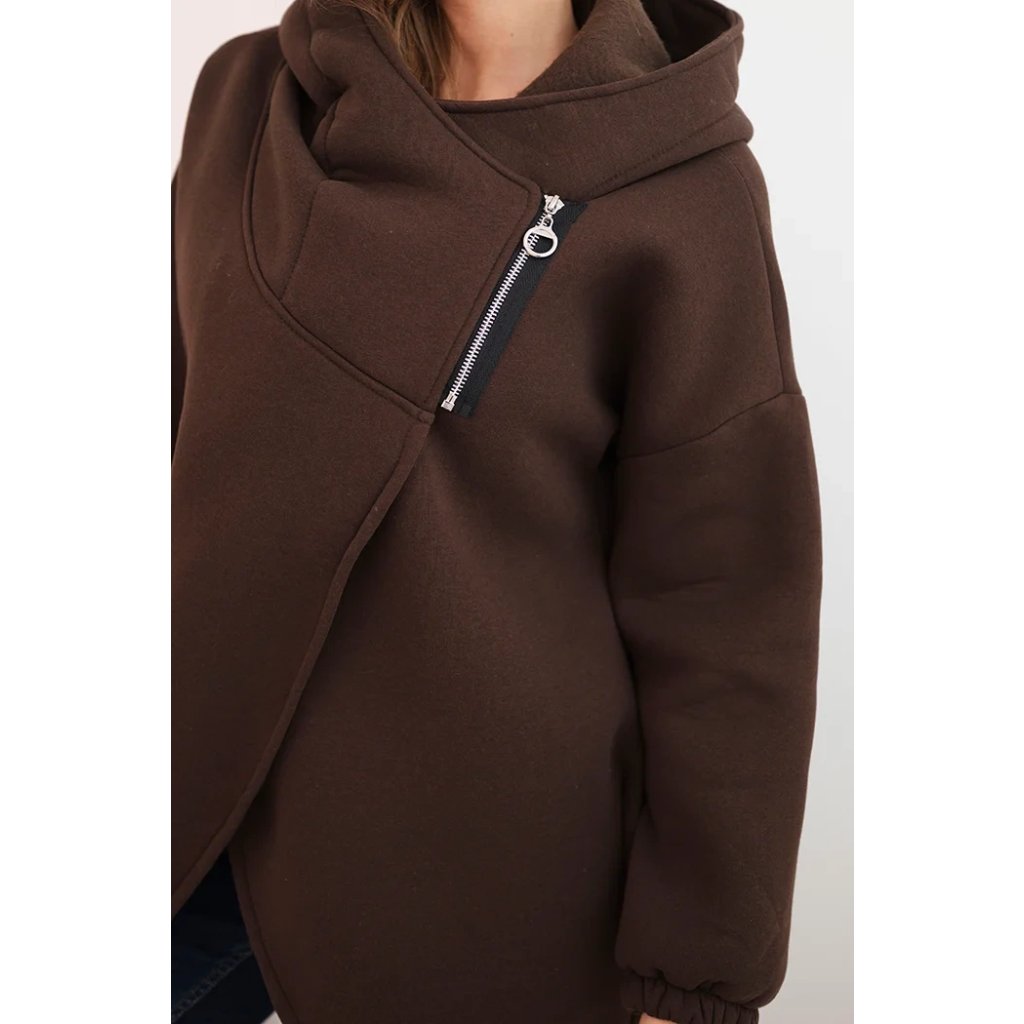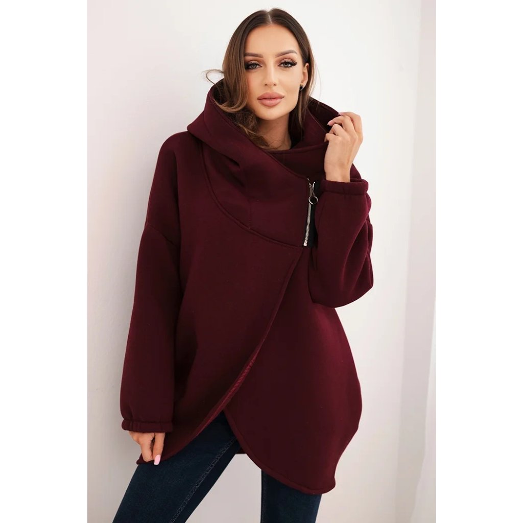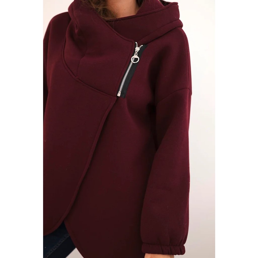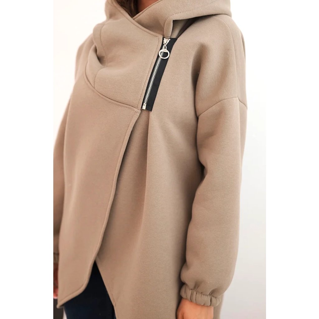 Tato dámská zateplená mikina s kapucí je vynikající volba na chladné dny – spojuje pohodlí s moderním designem. Vyznačuje se módním, asymetrickým střihem a šikmým zipem, který nejen plní praktickou funkci, ale také podtrhuje jedinečný styl mikiny.