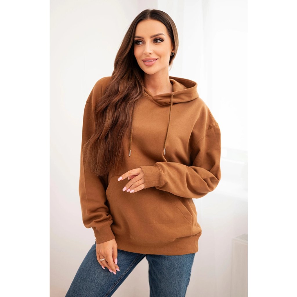 Dámska mikina s kapucňou a klokaním vreckom z bavlny camelová