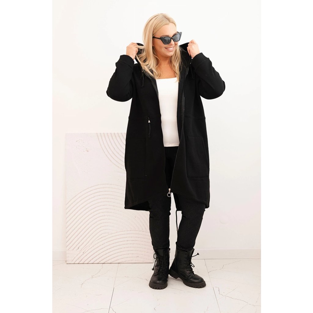 Vyrobená z mäkkého materiálu s prevahou bavlny, zaručuje príjemné teplo a pohodlie po celý deň. Kapucňa so šnúrkami a veľké našité vrecká jej dodávajú funkčnosť a športový charakter. Dĺžka pod boky opticky zoštíhľuje postavu a dodáva štylizácii originálny charakter.