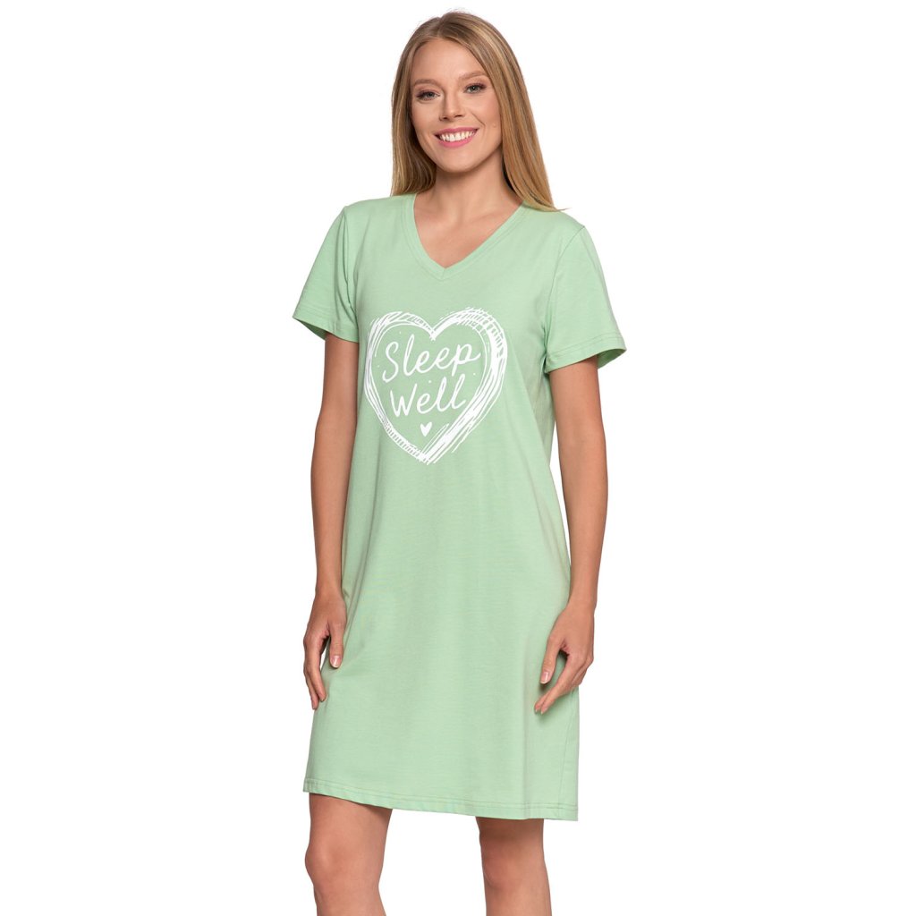 Nočná košeľa Moraj. Model PDK3100-022. Vyrobené z 65% bavlny, 30% polyesteru, 5% elastanu. Dĺžka rukávov: krátke. Dámsky produkt. Výstrih: do V. Dĺžka: krátka.Dodatočné parametre