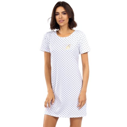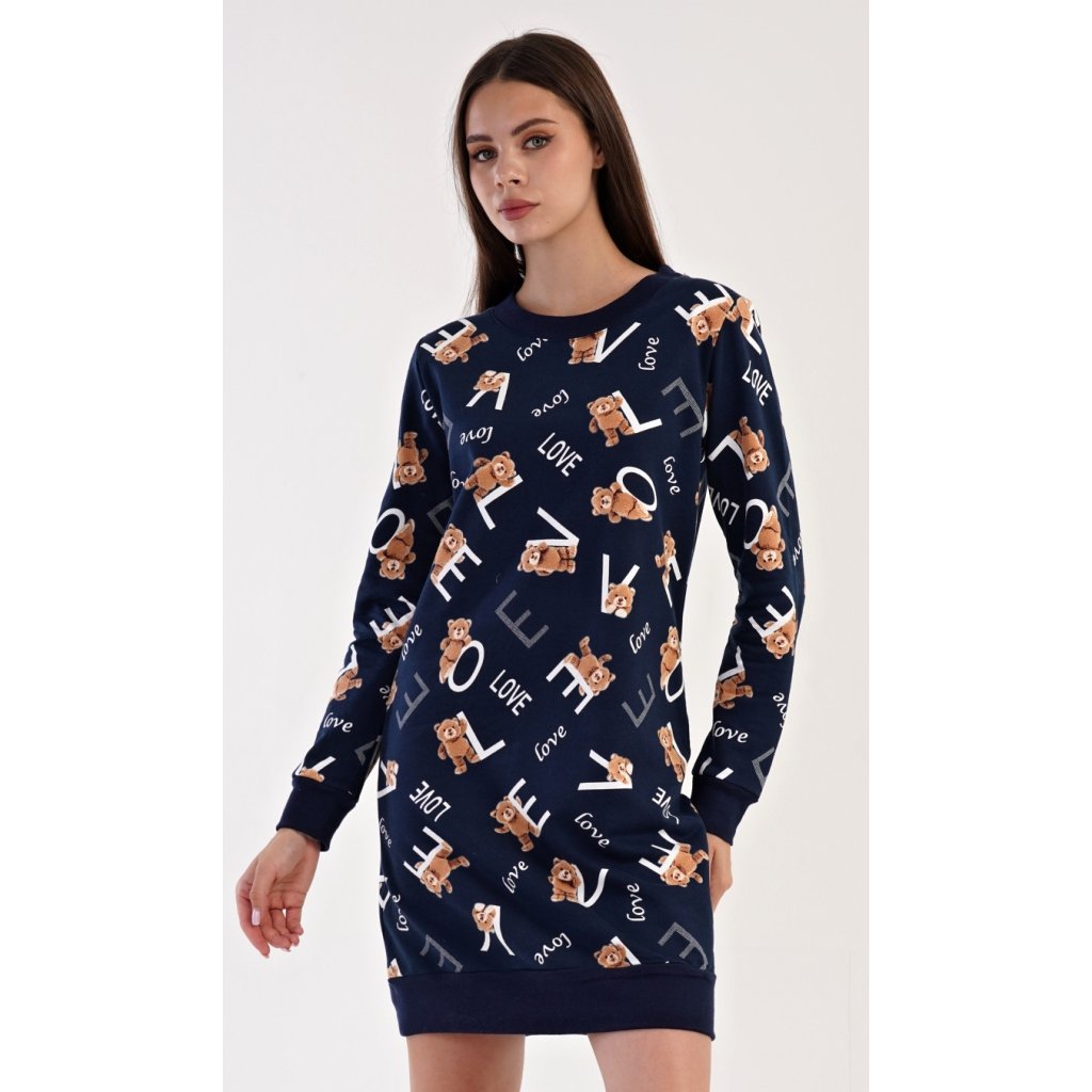 Dámska bavlnená nočná košeľa s dlhým rukávom Macko. Silnejší oteplený materiál je potlačený obrázkami plyšových medvedíkov a nápismi LOVE. Rukávy a spodný lem sú zakončené patentom. Košeľa je vhodná aj na denné nosenie ako domáce šaty. Doplnenú o legíny ju oceníte v chladnejších dňoch.