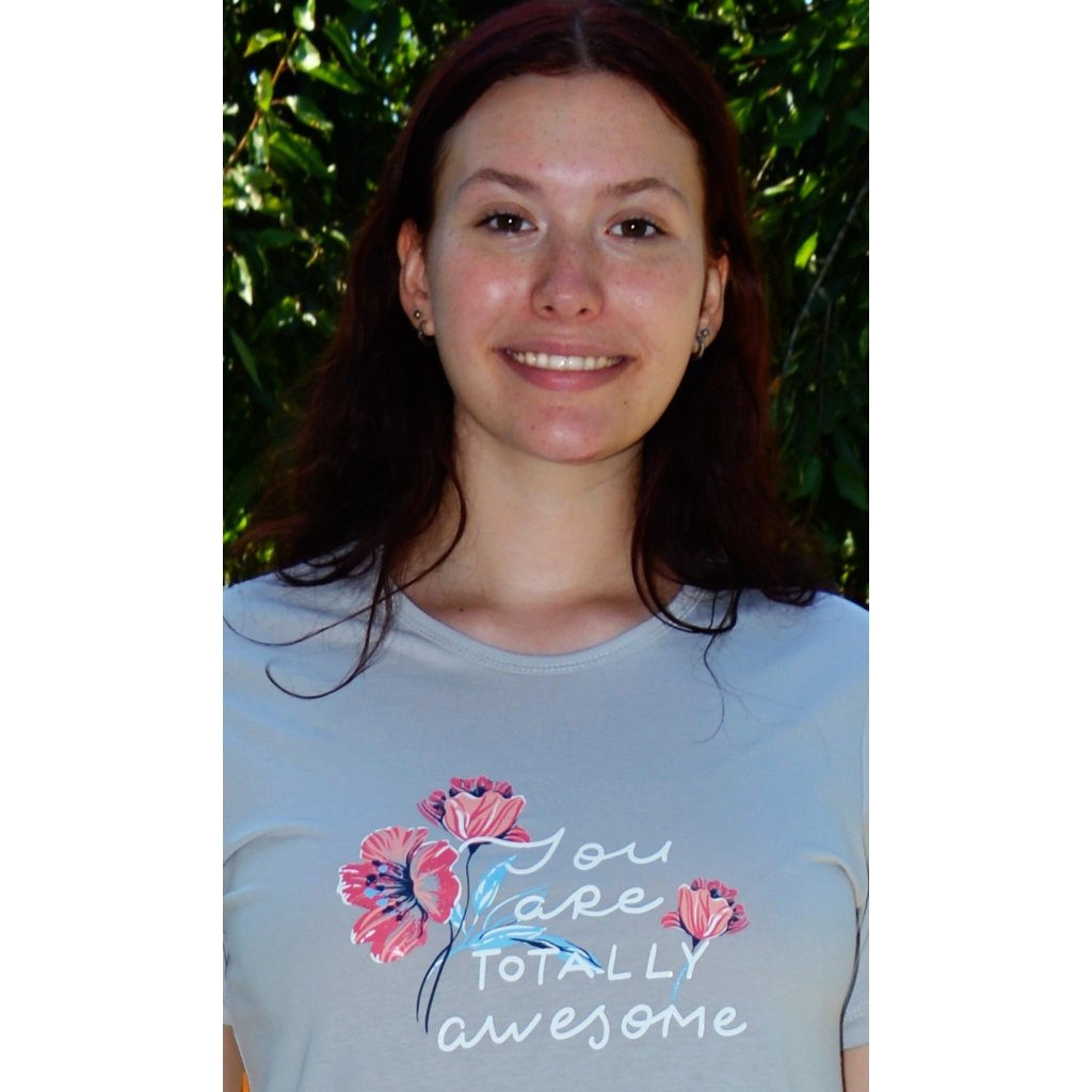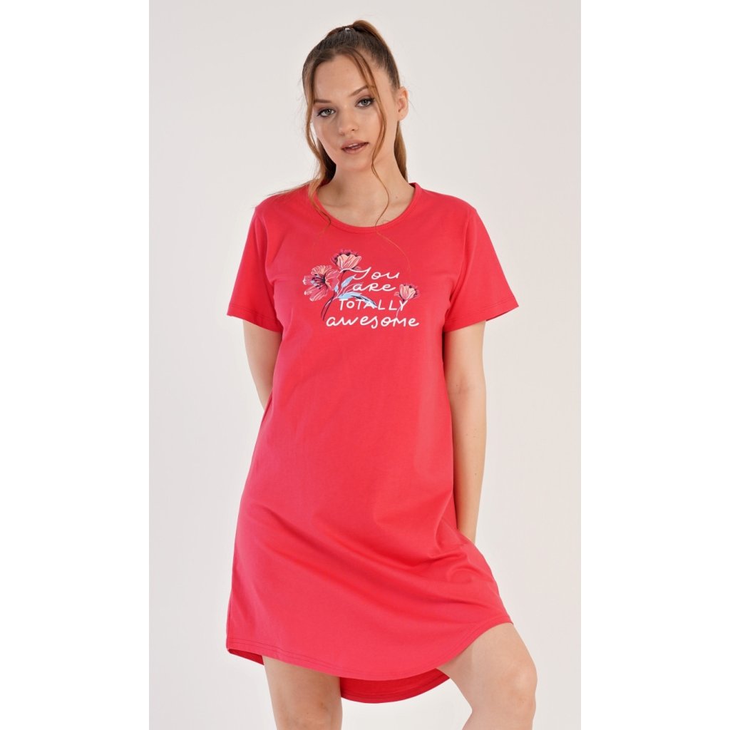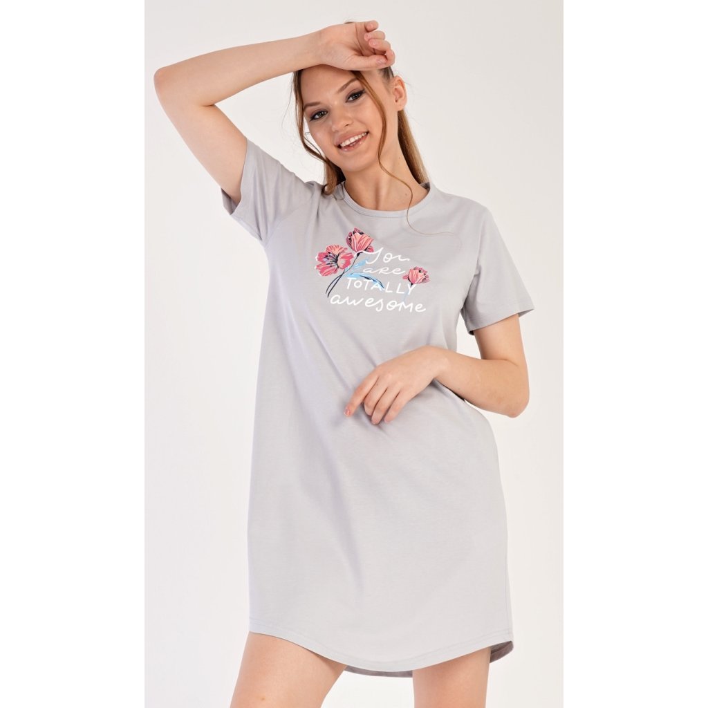 Dámska bavlnená nočná košeľa Cassie s krátkym rukávom. Táto nočná košeľa s okrúhlym výstrihom má na hrudi obrázok kvetov a nápis "You are totally awesome". Použitý bavlnený materiál je príjemný a pružný na dotyk.