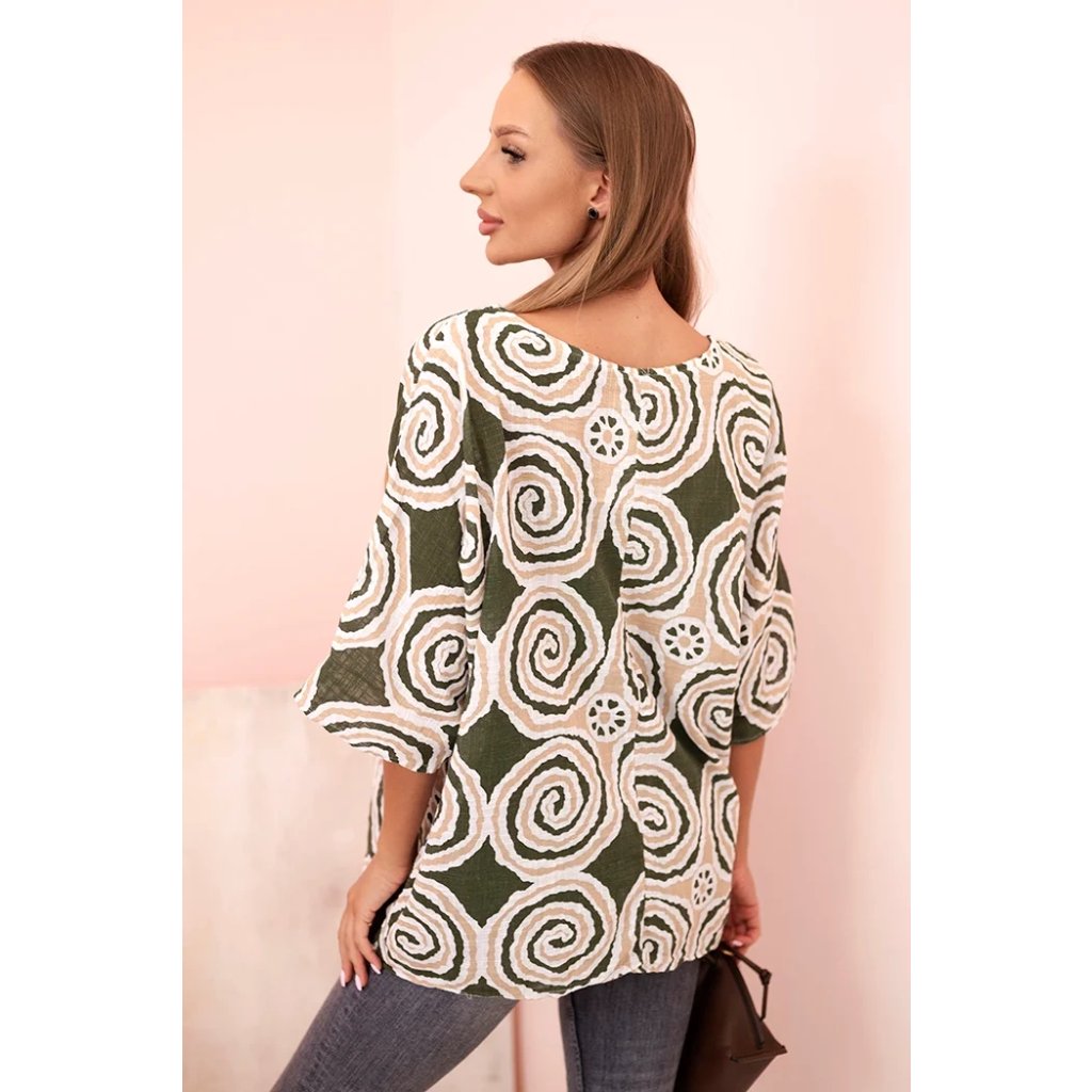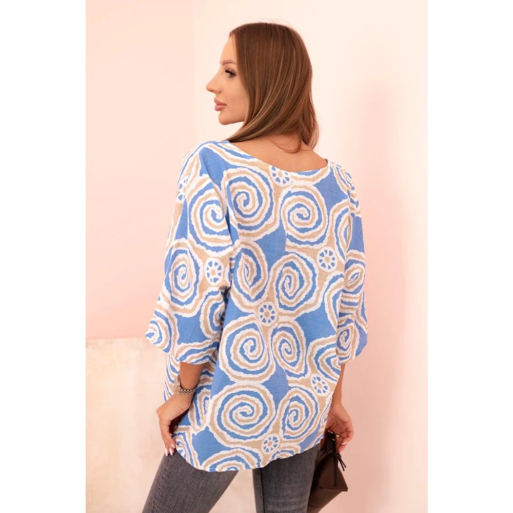 Dámska bavlnená blúzka s etnickými vzormi a ohrnutým rukávom