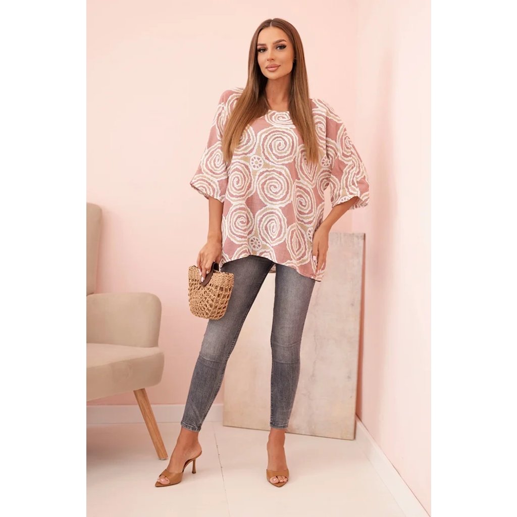 Toto dámske bavlnené tričko je ideálnou voľbou na každý deň, najmä pre ženy, ktoré si cenia štýl a pohodlie. Vyznačuje sa originálnym etnickým vzorom so špirálovými motívmi, ktoré jej dodávajú charakter a jedinečný štýl. Ľahší, priedušný materiál zaisťuje komfort nosenia aj v teplejších dňoch a voľný strih skvele sedí na postave. Rukávy s možnosťou ohrnutia sú praktickým doplnkom, ktorý sa osvedčí v premenlivých poveternostných podmienkach. Vynikajúca ako k džínsom, tak k letným nohaviciam alebo sukniam. Veľkosť je univerzálna a bude vhodná pre dámy vo veľkosti S, M alebo L.