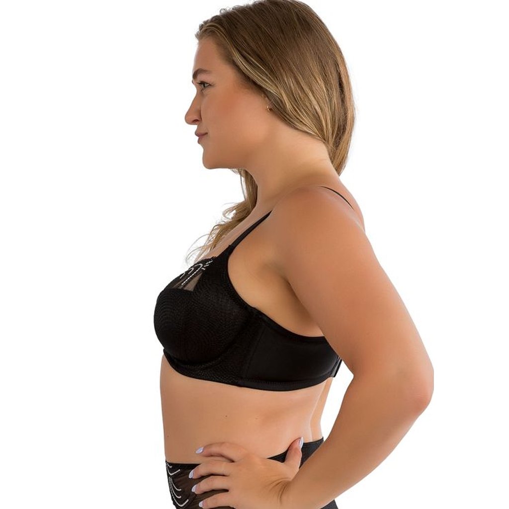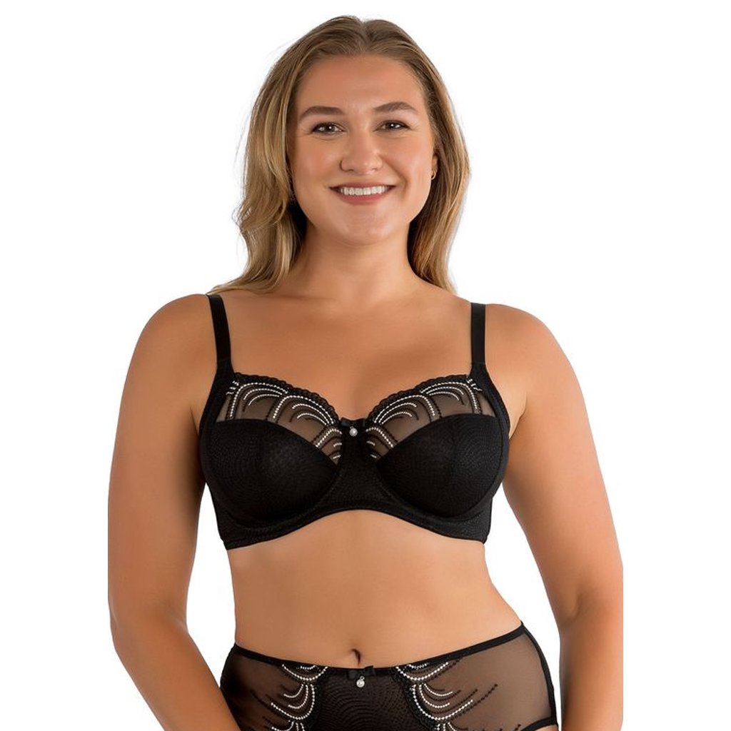 Luxusná podprsenka Parfait Pearl v čiernej farbe očarí svojím elegantným dizajnom a precíznym spracovaním. Nevystužené trojštvrťové košíčky s kosticami kombinujú jemnú sieťovinu s vyšívaným vzorom pripomínajúcim perlové oblúčiky, ktoré krásne zvýrazňujú dekolt. Stred medzi košíčkami zdobí drobná mašlička s kamienkom pre extra šmrnc. Nastaviteľné ramienka a zapínanie na chrbte zaisťujú pohodlné nosenie a dokonalé prispôsobenie postave. Ideálna voľba pre ženy, ktoré chcú spojiť zmyselnosť, oporu a výnimočný vzhľad.