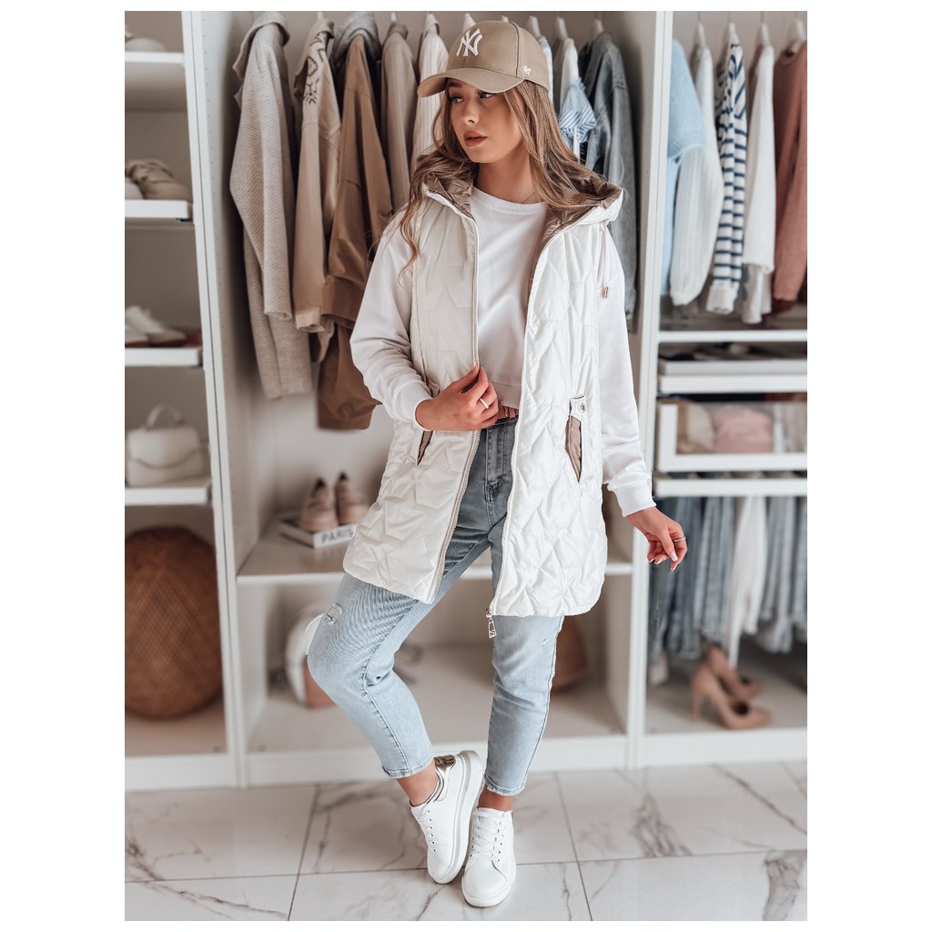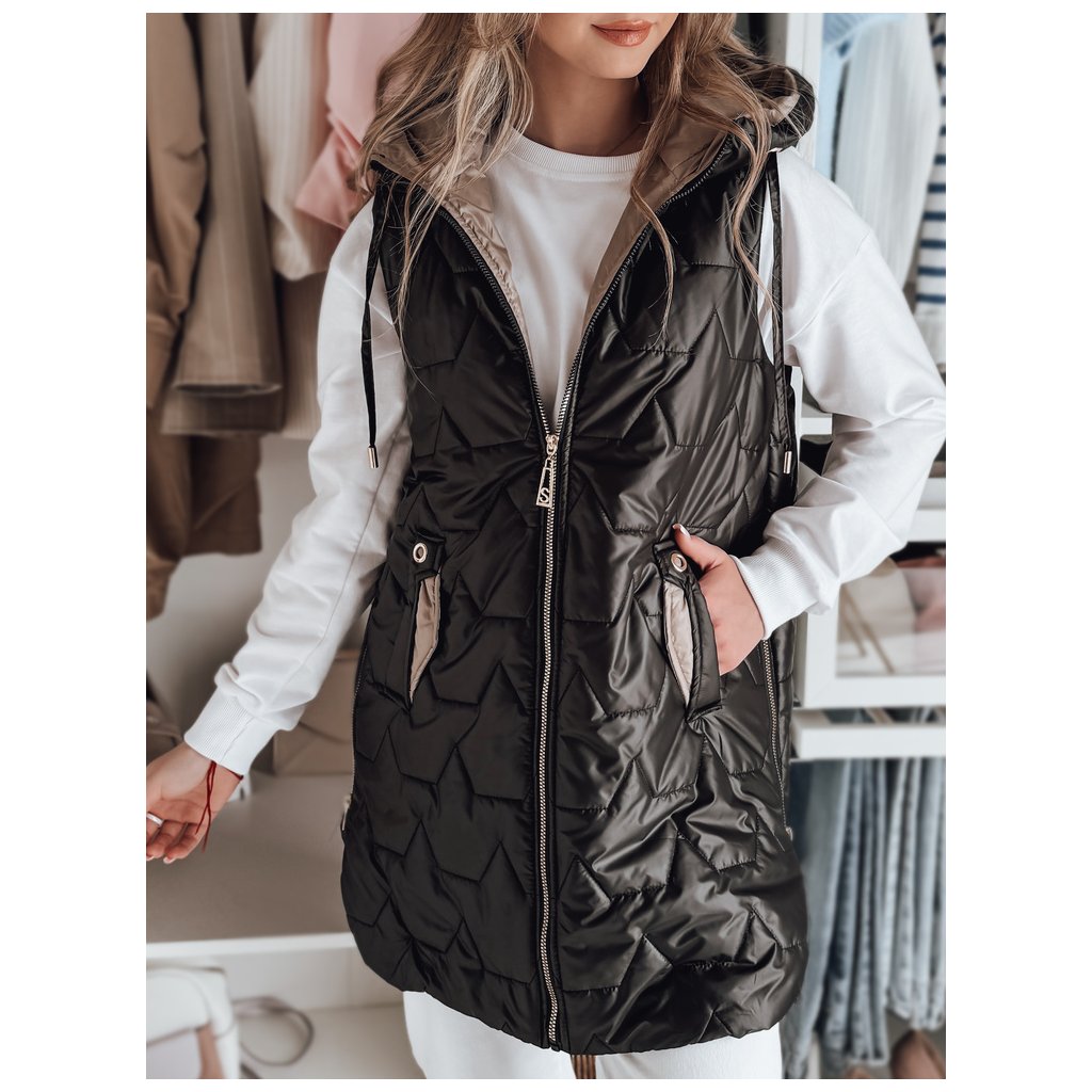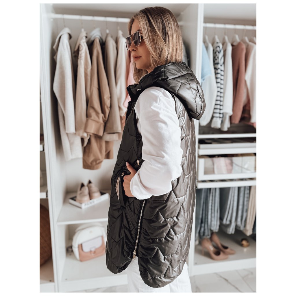 Vesta dámska prechodná s prešívanou faktúrou, zapínaná na pohodlný zips. Má praktickú, neodnímateľnú kapucňu so šnúrkou na reguláciu a dve ozdobné vrecká. Subtílne zateplenie zaisťuje komfort v chladnejšie dni. Výborná do casualových štylizácií, skvele sa kombinuje s džínsami a teniskami.