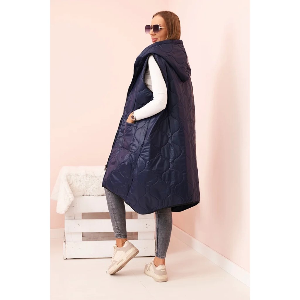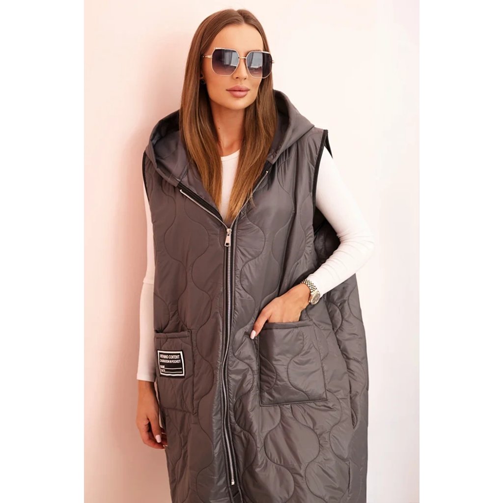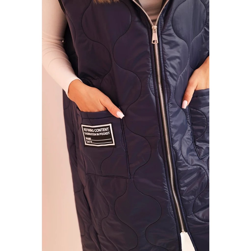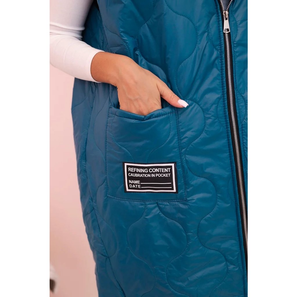 Prešívaná dámska vesta Plus Size je ideálnym návrhom na chladnejšie dni. Vďaka praktickej kapucni a pohodlnému zapínaniu na zips sa hodí ako do mestských štylizácií, tak na prechádzky. Model má módny geometrický vzor prešívania, ktorý dodáva celku charakter, a dĺžka siahajúca za boky skvele modeluje siluetu. Priestranné vrecká vpredu zvyšujú funkčnosť a ozdobná nášivka dodáva športový štýl. Táto vesta je kombináciou pohodlia a štýlu – vyrobená z ľahkého, ale odolného materiálu, ideálna na nosenie počas celej prechodnej sezóny. Môže byť kombinovaná s legínami, džínsami alebo športovými šatami, čím vytvára módne, vrstvené štylizácie. Veľkosť je univerzálna a bude vhodná pre dámy vo veľkosti L, XL, XXL.