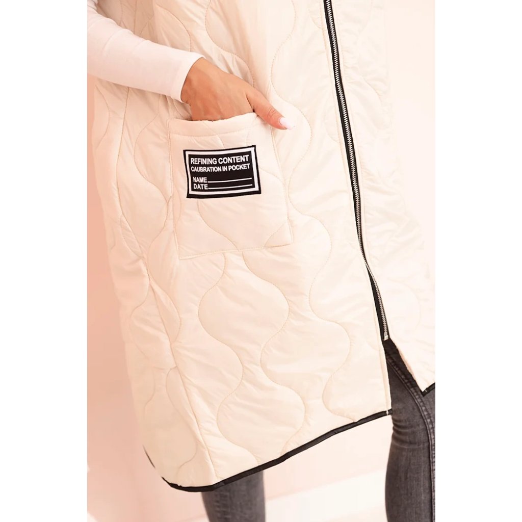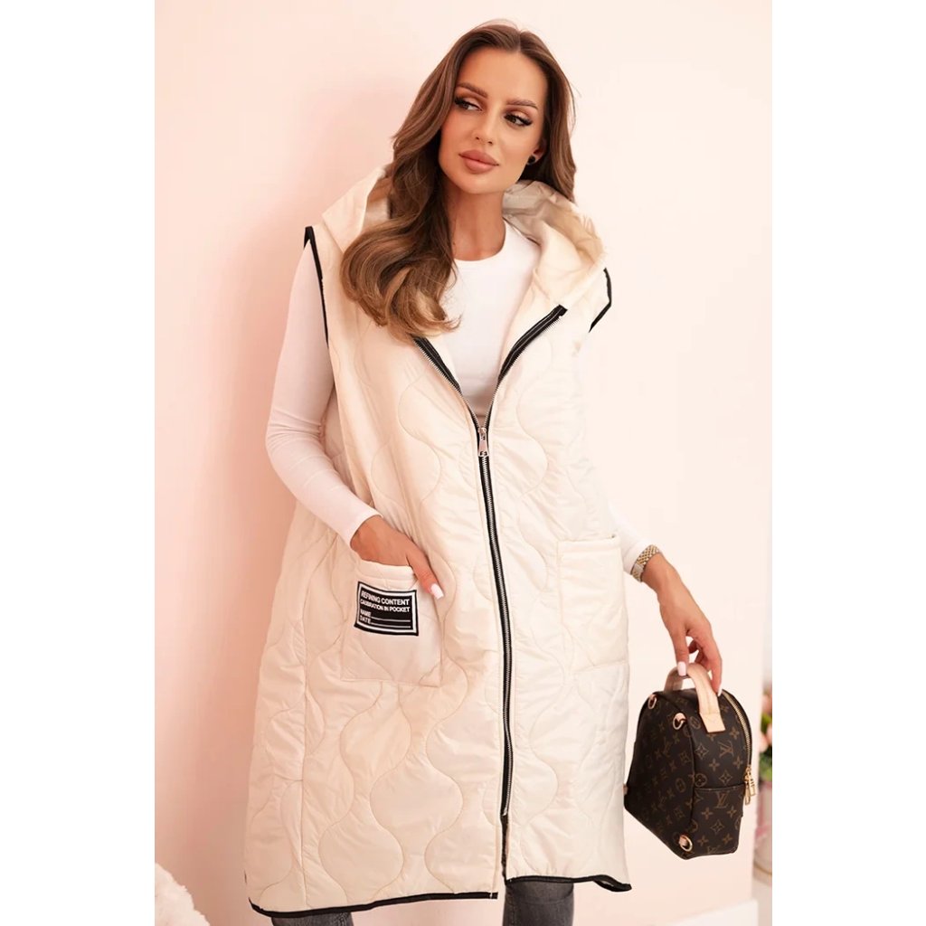 Prešívaná dámska vesta Plus Size je ideálnym návrhom na chladnejšie dni. Vďaka praktickej kapucni a pohodlnému zapínaniu na zips sa hodí ako do mestských štylizácií, tak na prechádzky. Model má módny geometrický vzor prešívania, ktorý dodáva celku charakter, a dĺžka siahajúca za boky skvele modeluje siluetu. Priestranné vrecká vpredu zvyšujú funkčnosť a ozdobná nášivka dodáva športový štýl. Táto vesta je kombináciou pohodlia a štýlu – vyrobená z ľahkého, ale odolného materiálu, ideálna na nosenie počas celej prechodnej sezóny. Môže byť kombinovaná s legínami, džínsami alebo športovými šatami, čím vytvára módne, vrstvené štylizácie. Veľkosť je univerzálna a bude vhodná pre dámy vo veľkosti L, XL, XXL.