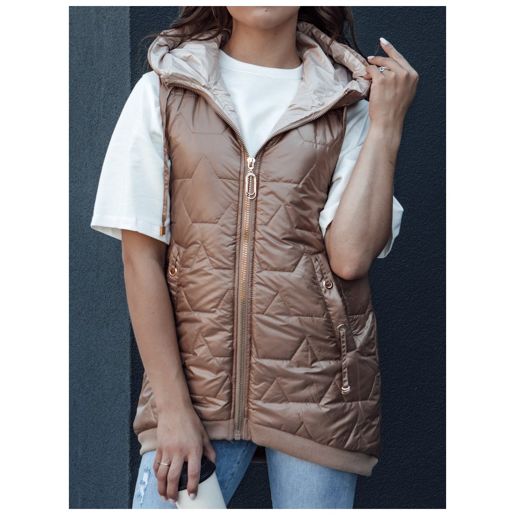 Dámska prešívaná vesta s kapucňou COLINE zlatá Dstreet TY4461