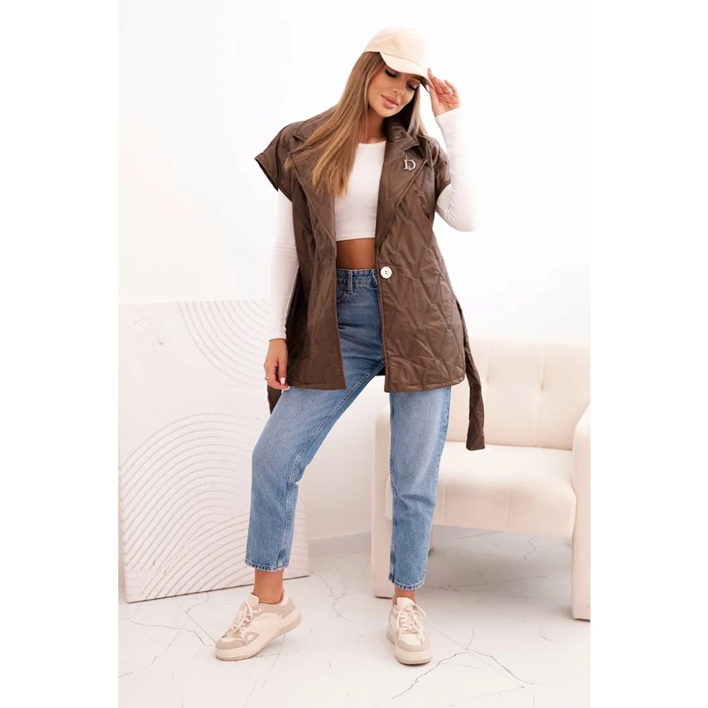 Dámska prešívaná vesta s opaskom a širokým golierom Solid