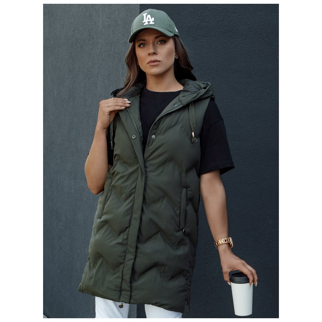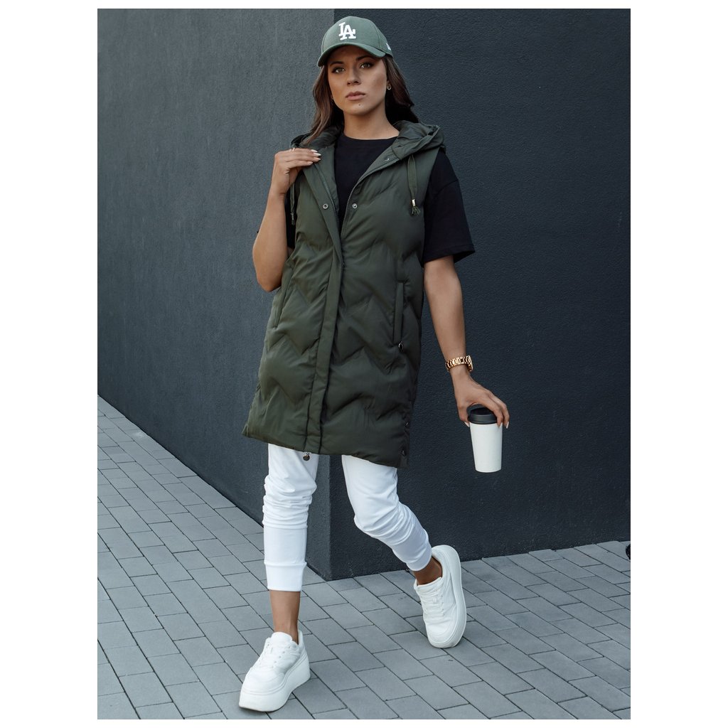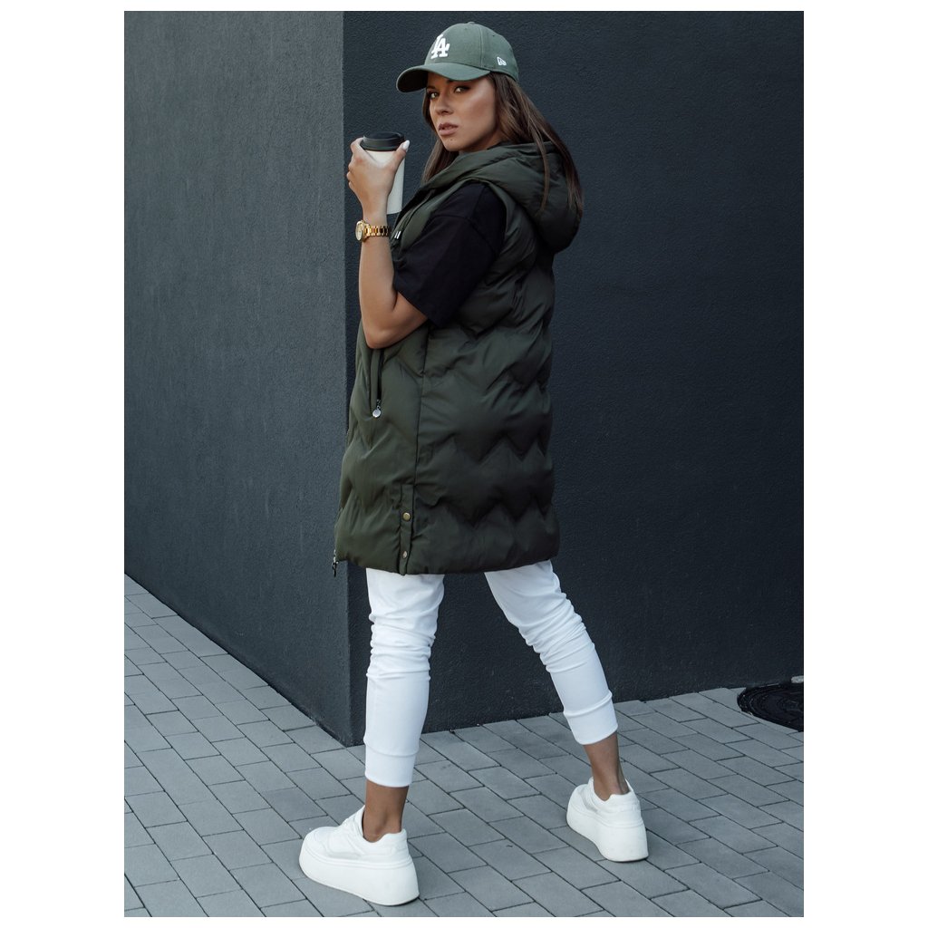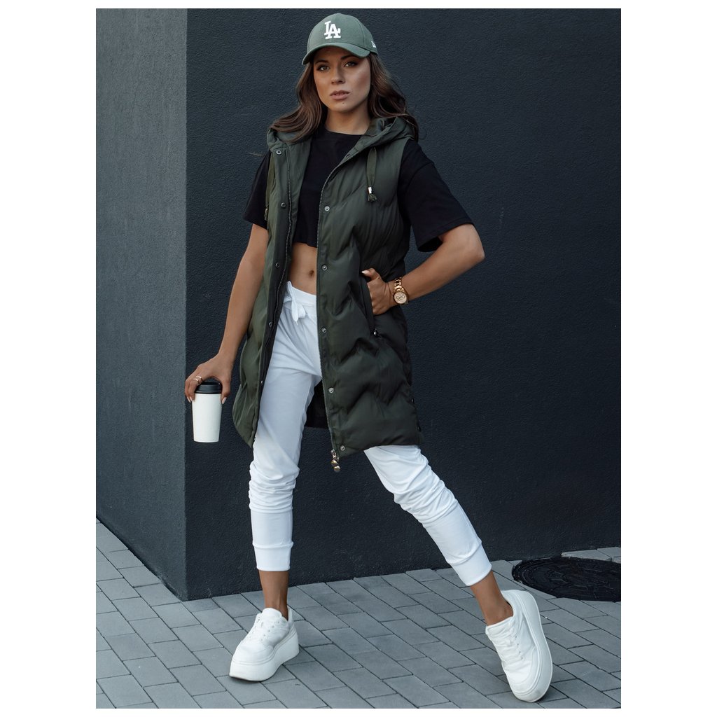 Táto dlhšia prešívaná vesta je ideálna na chladné dni. Má veľkú kapucňu, dve vrecká a cvoky v spodnej časti, ktoré slúžia aj ako dekoratívne prvky. TAMIRA sa perfektne hodí k teplákovej súprave a teniskám. K dispozícii v štyroch farbách.