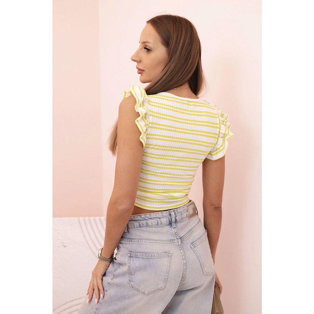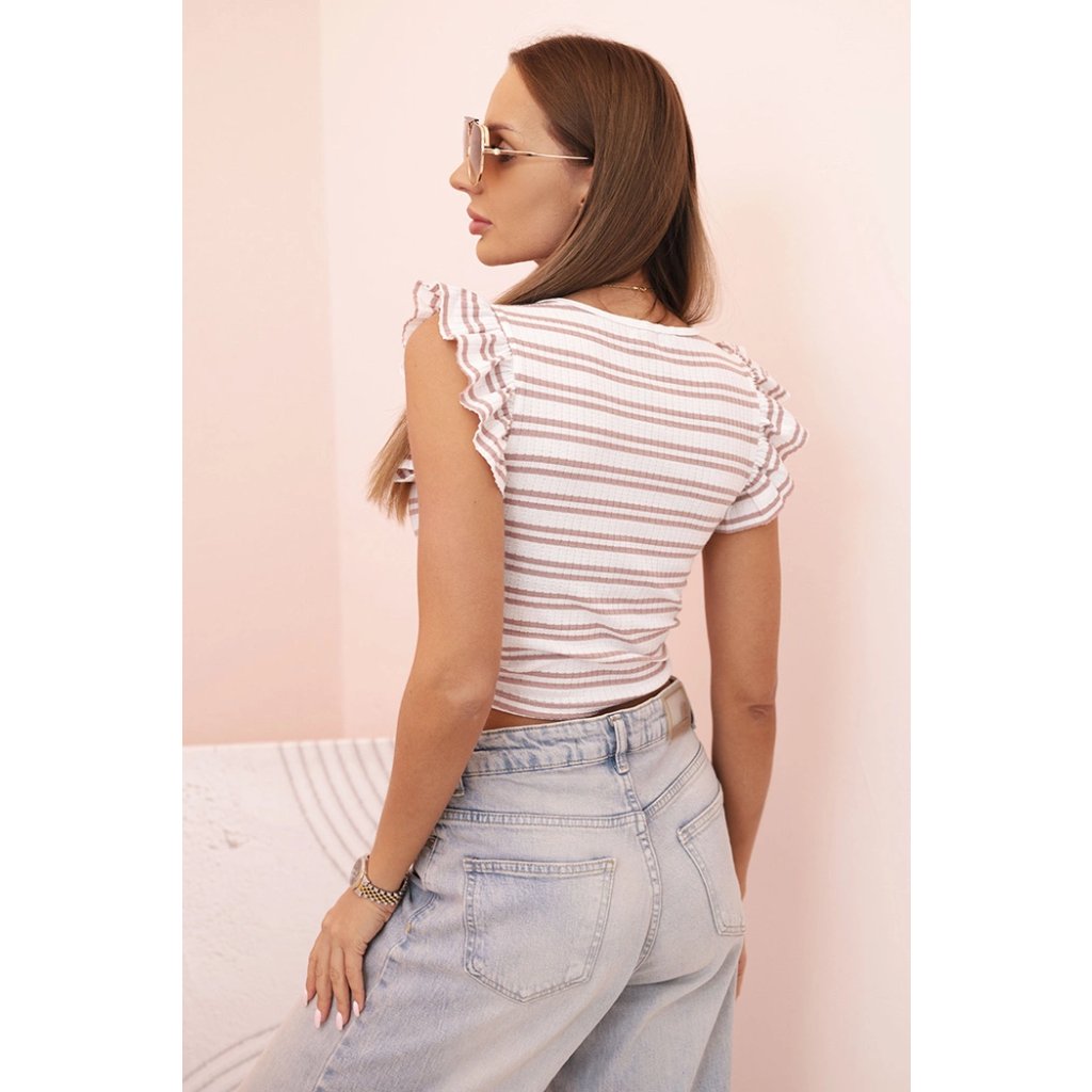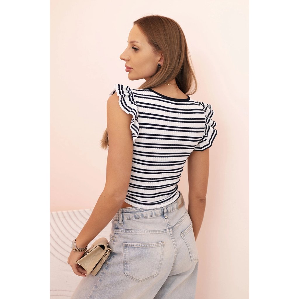 Dámska pruhovaná blúzka so skladmi a volánmi Reto