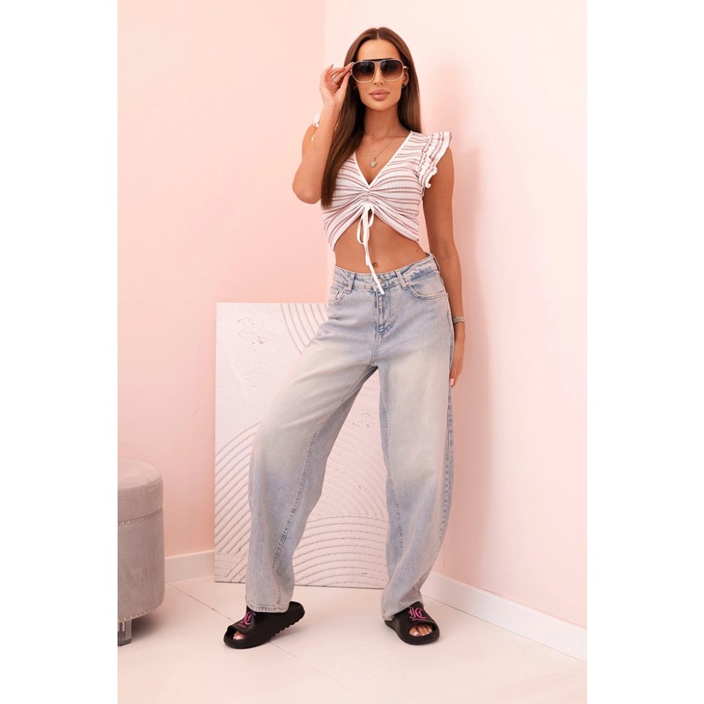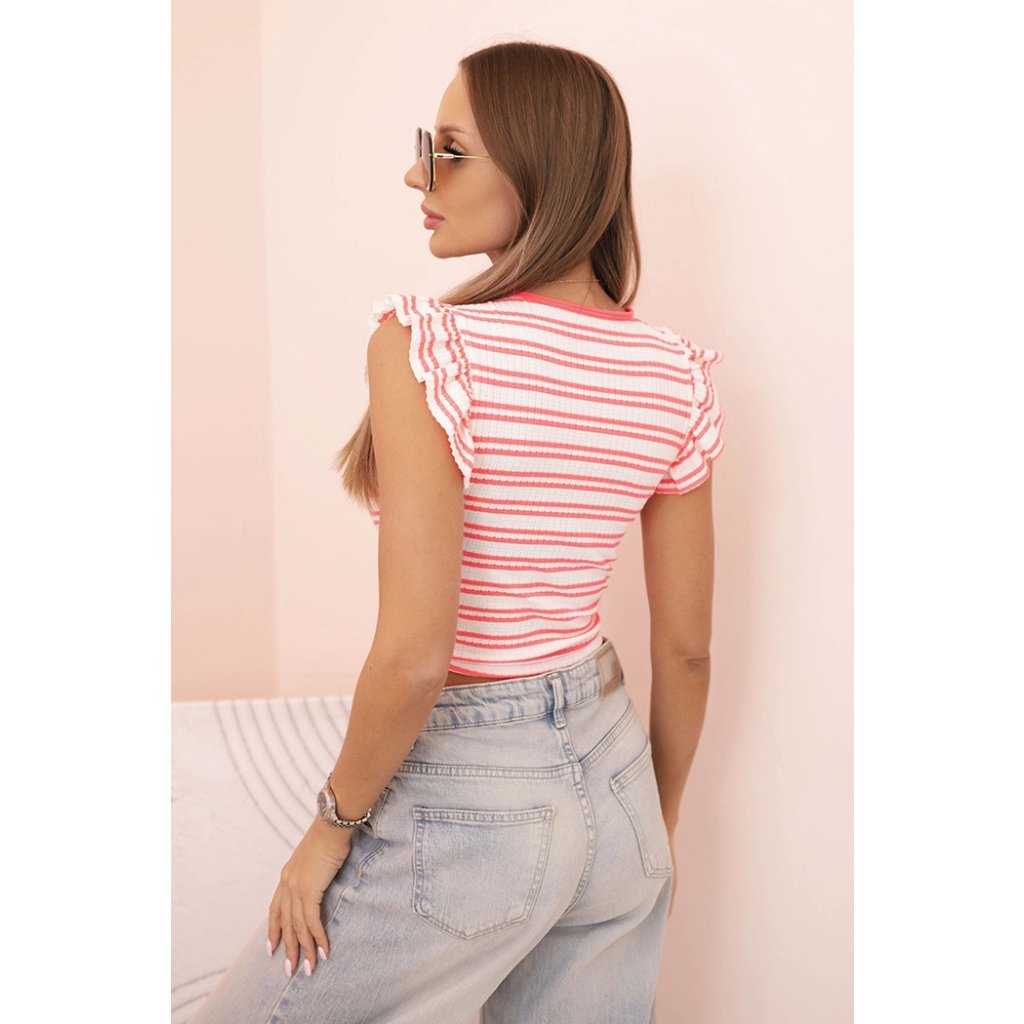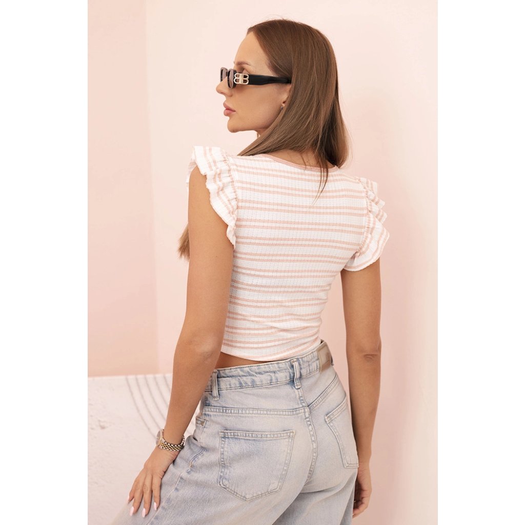 Dámska pruhovaná blúzka so skladmi a volánmi Reto