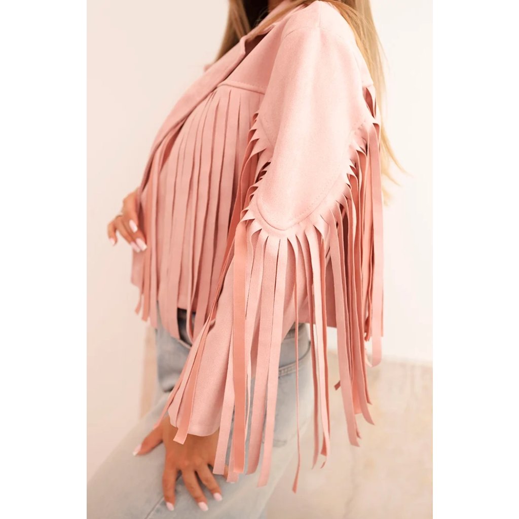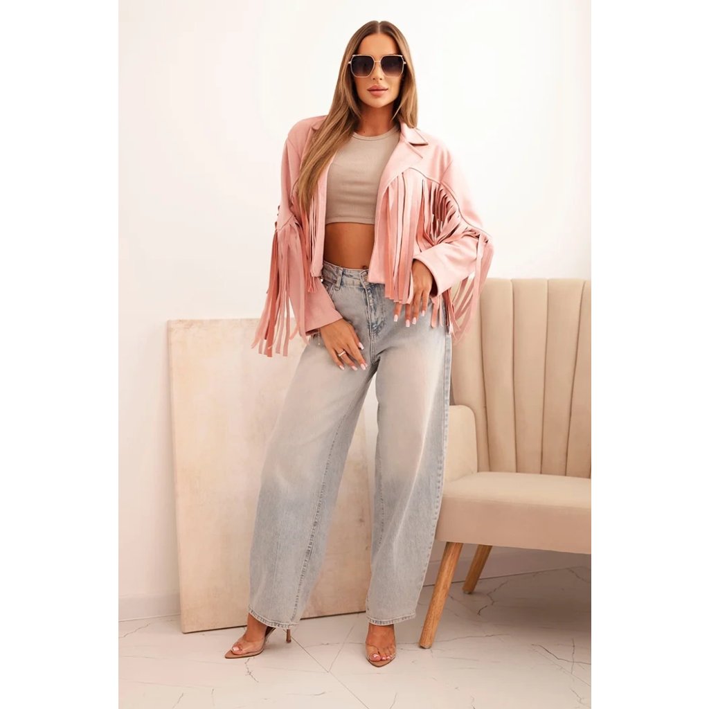Dámska semišová bunda ART4359 s strapcami