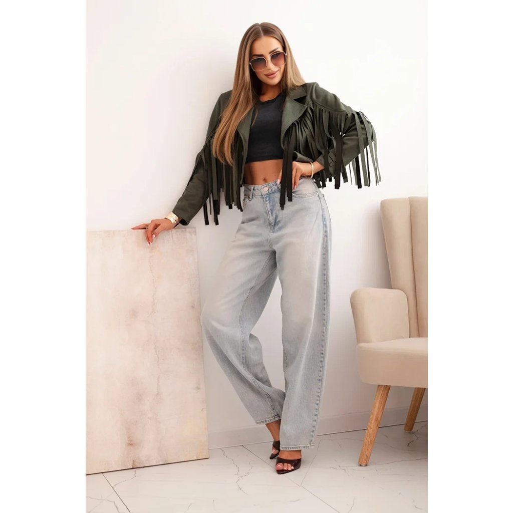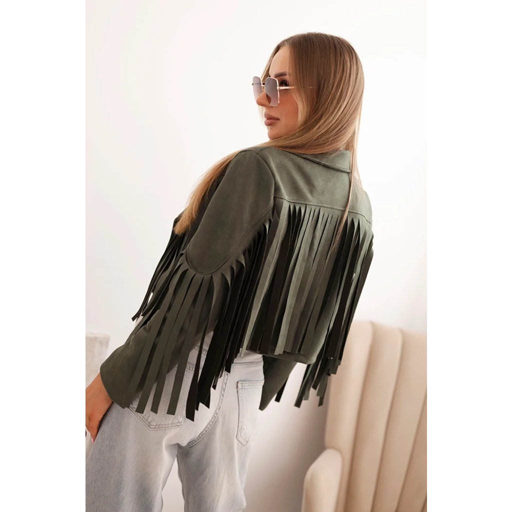 Dámska semišová bunda ART4359 so strapcami - výpredaj