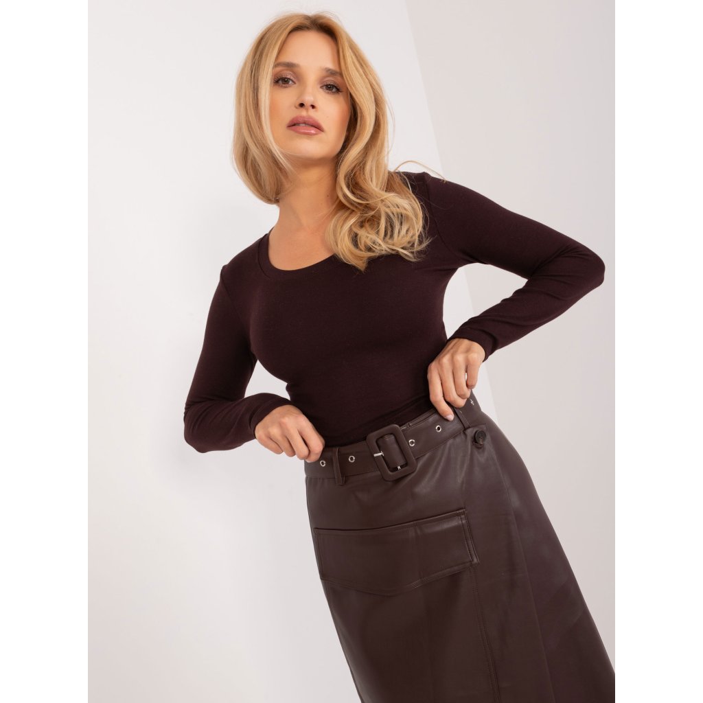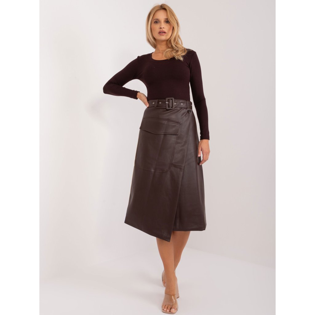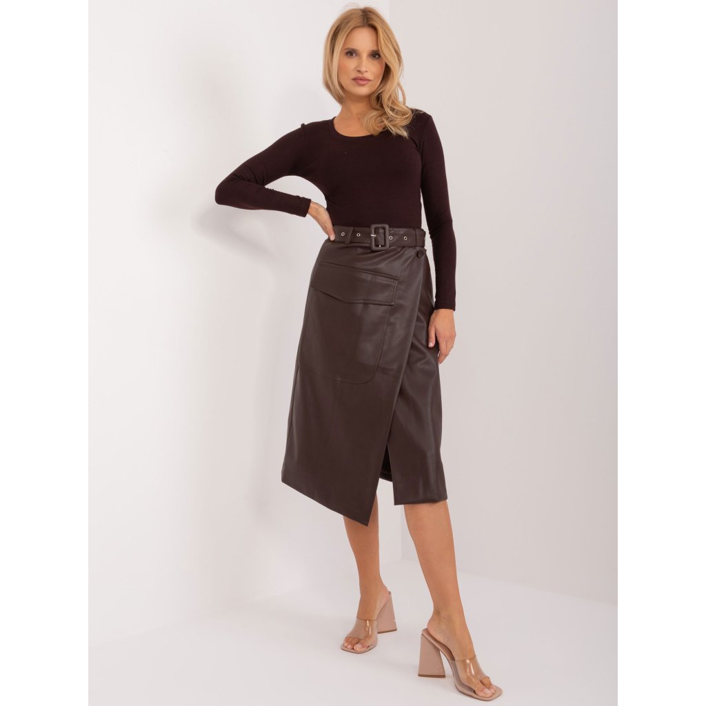 Tmavohnedá obálková cargo sukňa z ekokože.
