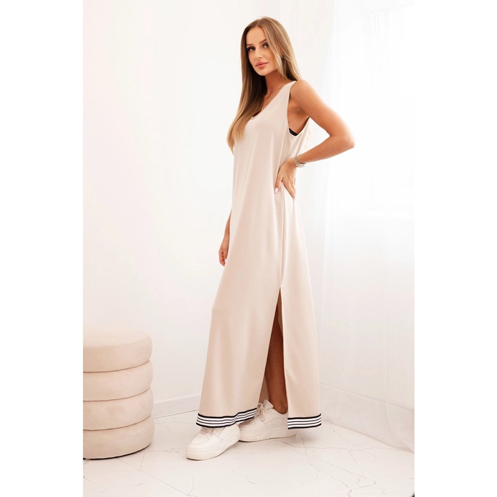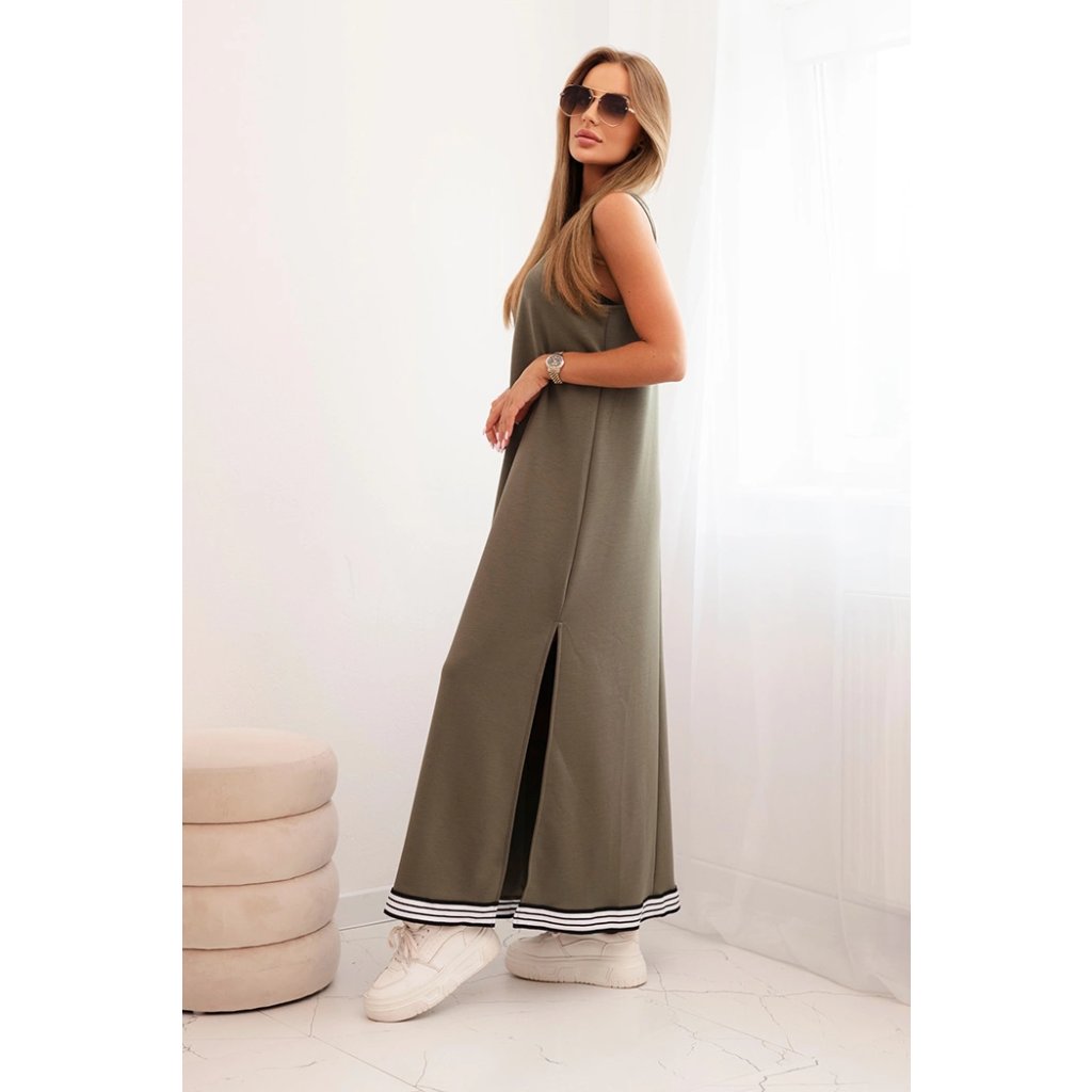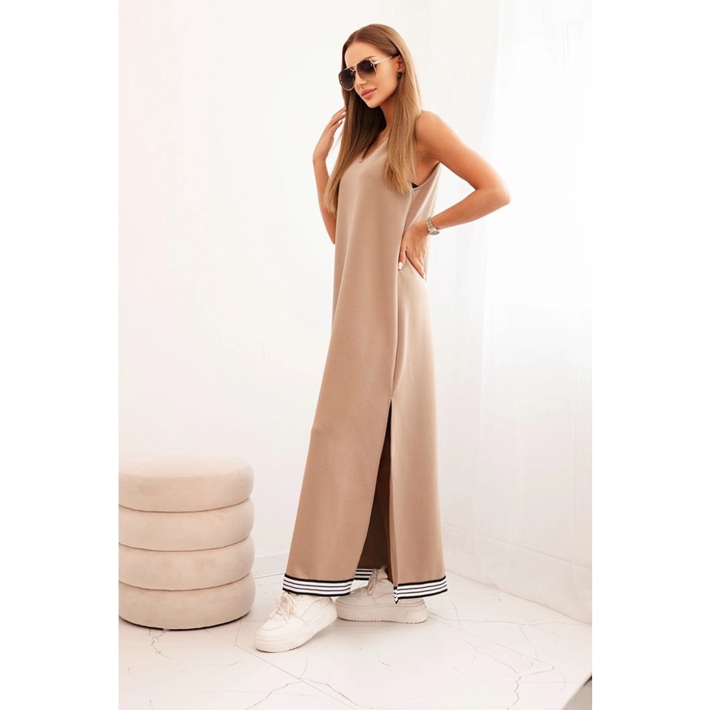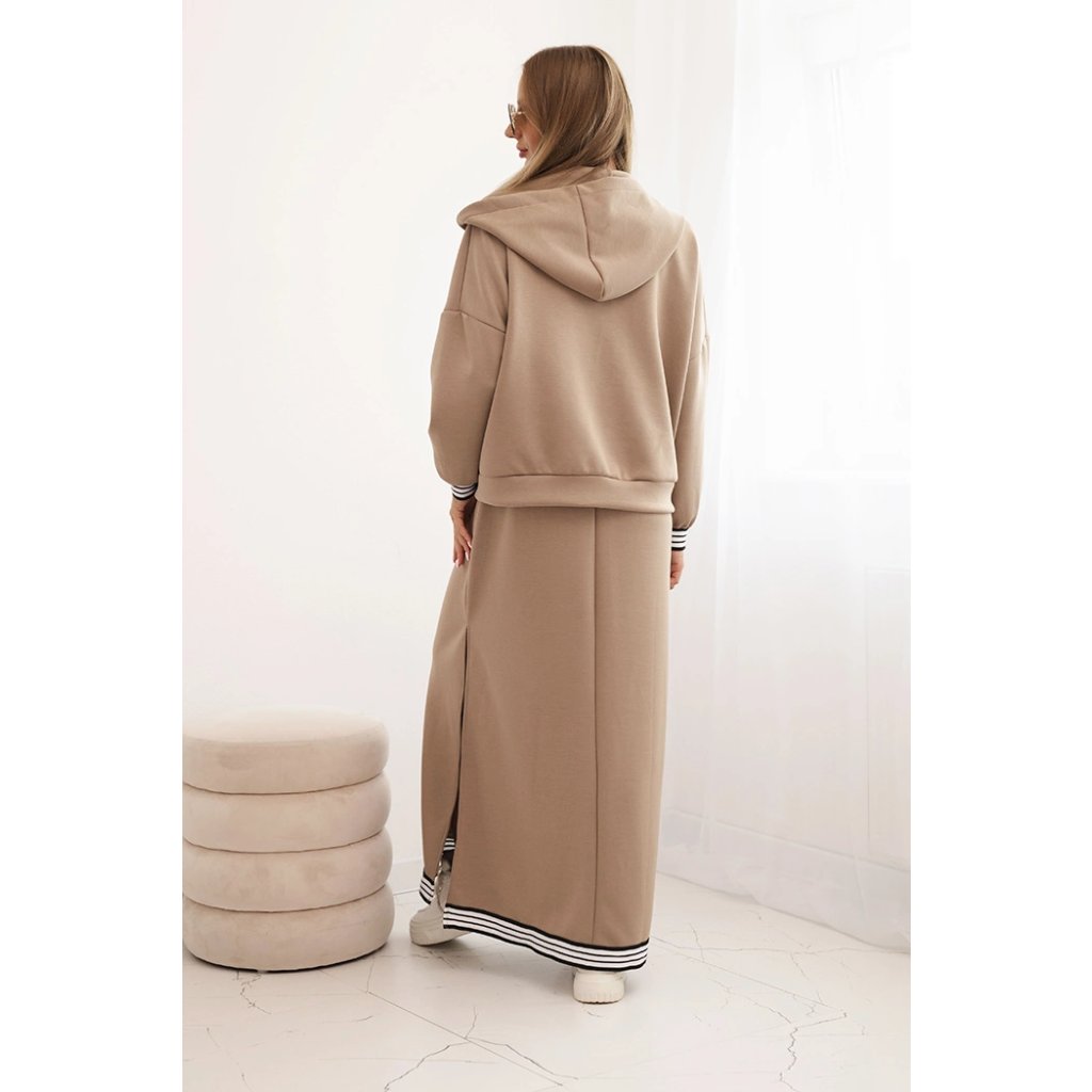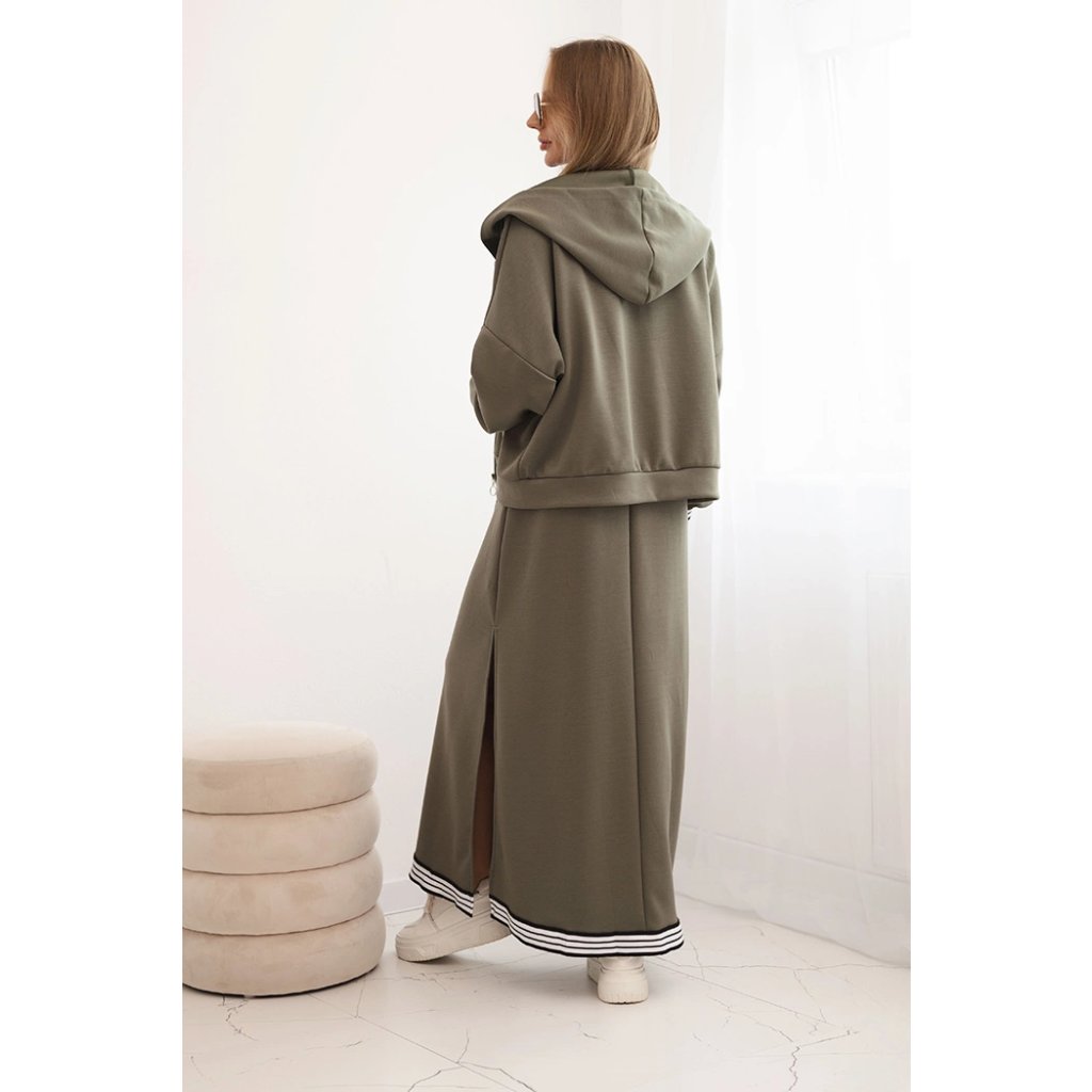 Pohodlný a módny dámsky komplet z viskózy, ktorý sa skladá z dlhých šiat a krátkej mikiny s kapucňou a zipsom. Šaty majú jednoduchý strih s jemne rozšíreným spodným lemom, vďaka čomu sa skvele prispôsobujú postave. Mikina s praktickými vreckami a kontrastnými nápletmi dodáva športový charakter a robí, že súprava vyzerá moderne a uvoľnene.