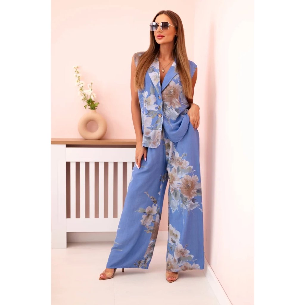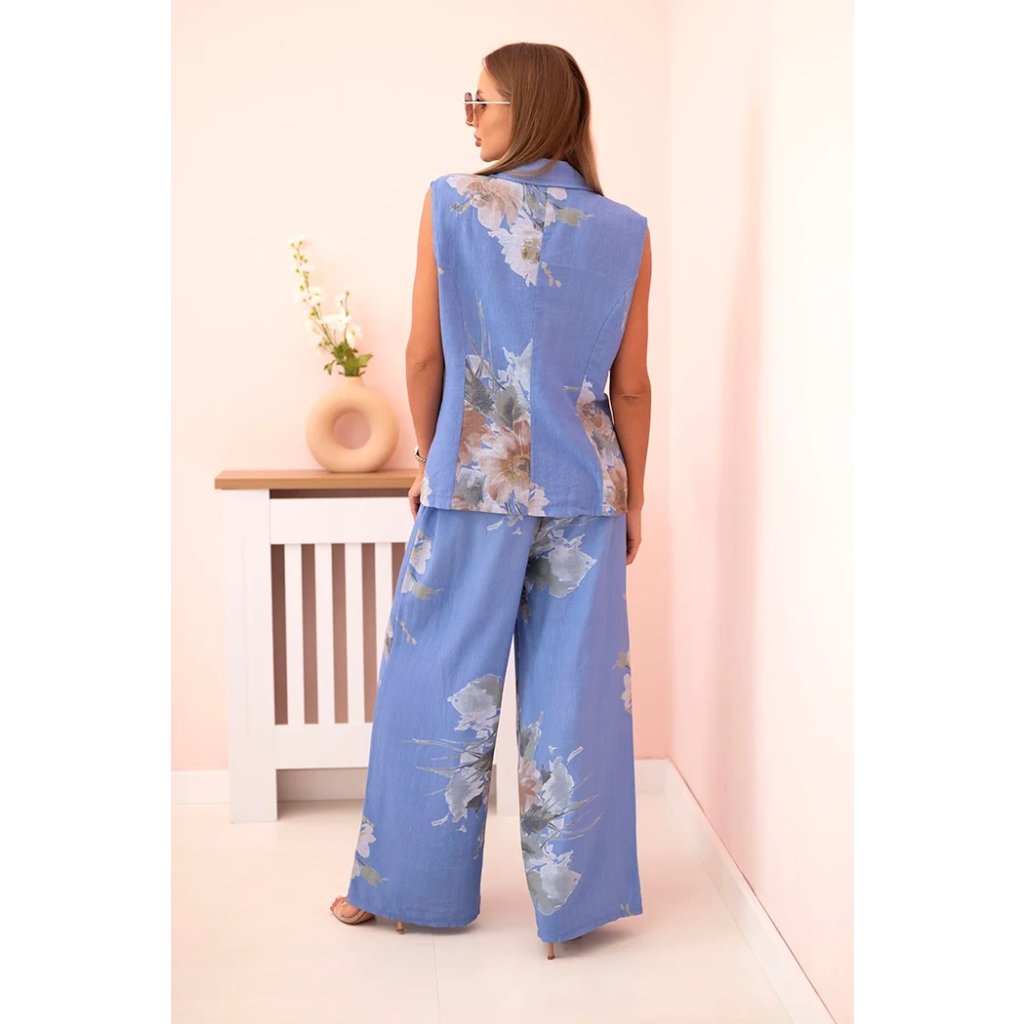 Dámska súprava Buter z viskózy, vestu a nohavice kvetinové