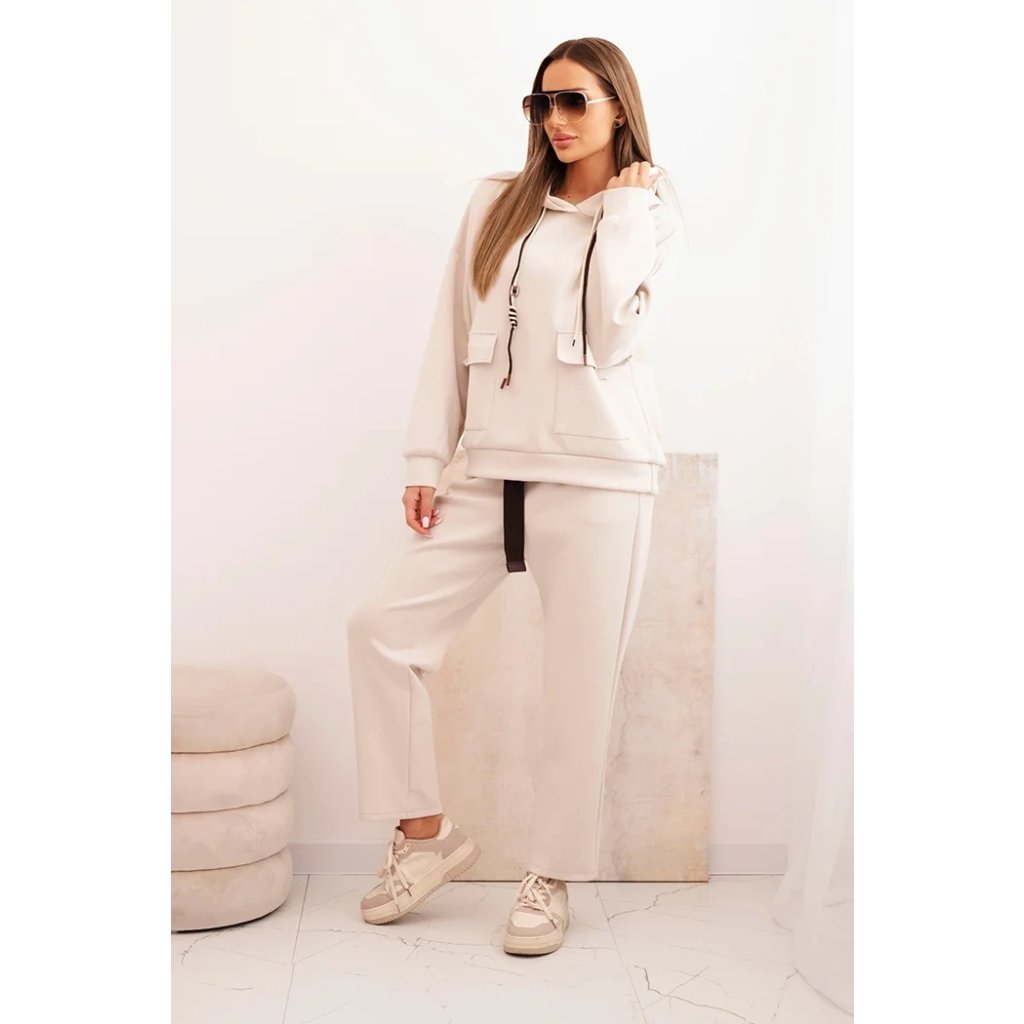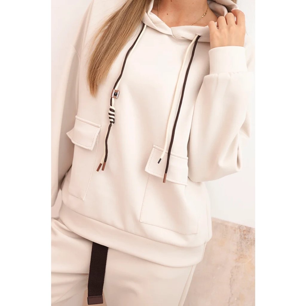 Dámska súprava maslová mikina s kapucňou a nohavice s opaskom Mata
