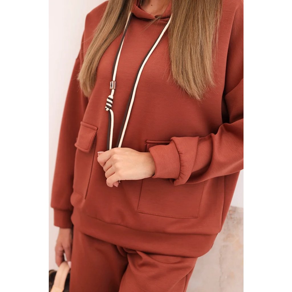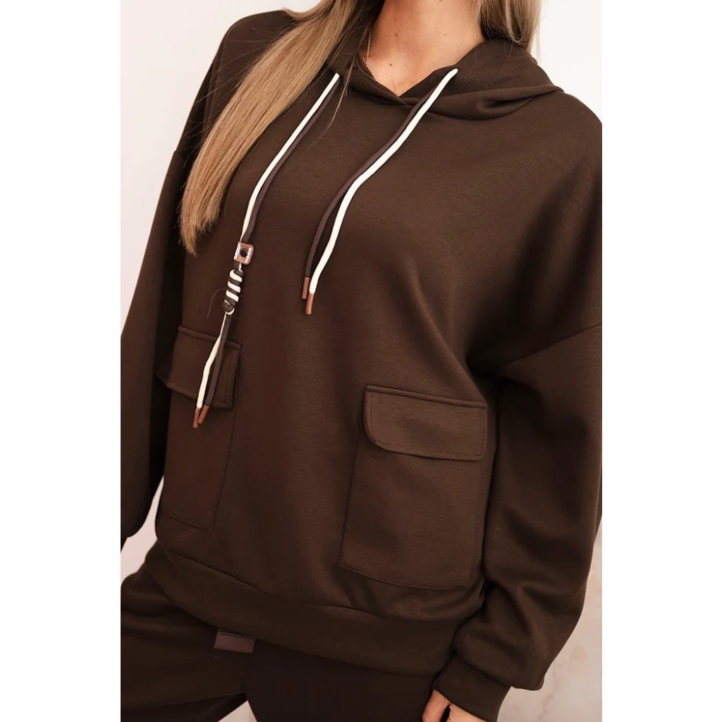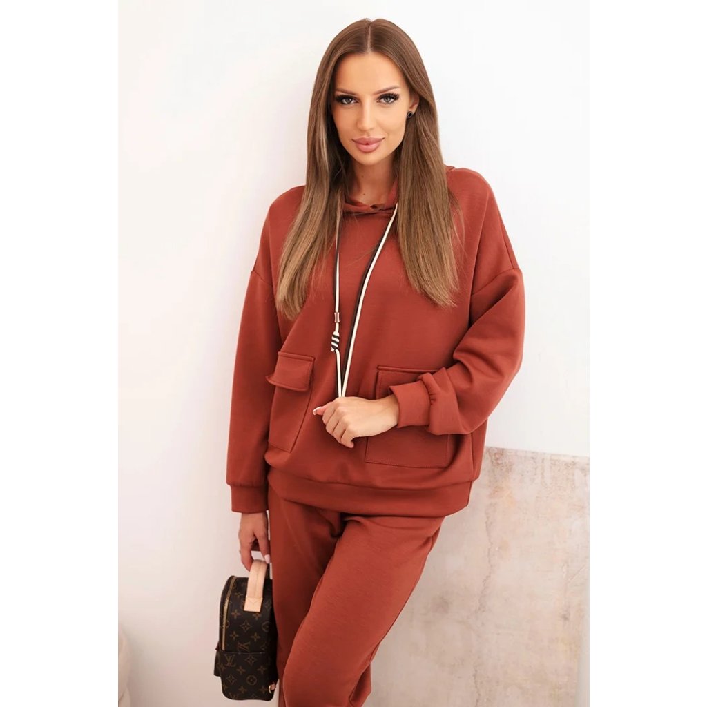 Dámska súprava z maslového materiálu je vynikajúcou voľbou pre ženy, ktoré ocenia pohodlie, módny štýl a vysokú kvalitu. Mikina s kapucňou, veľkými vreckami a voľným strihom zaisťuje plnú slobodu pohybu, zatiaľ čo nohavice s elastickým pásom a látkovým opaskom krásne podčiarkujú pás. Celkovo tvorí výnimočne pohodlnú a ženskú súpravu, ideálnu na každodenné vychádzky, prechádzky alebo relaxáciu doma.