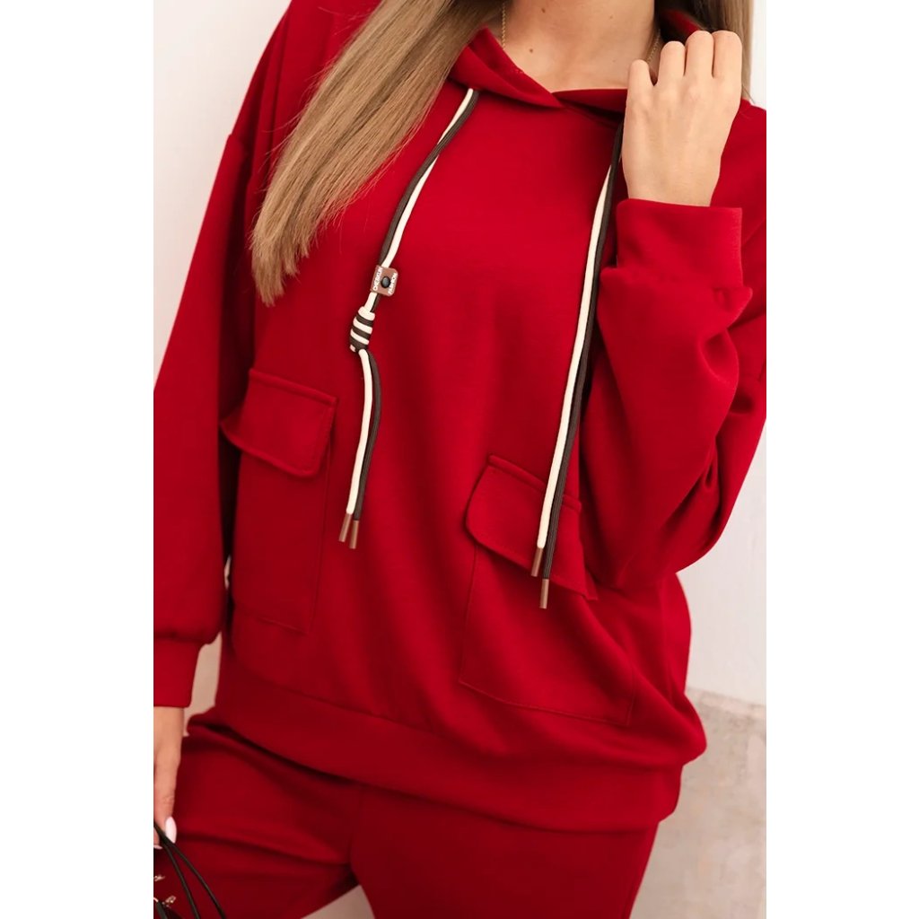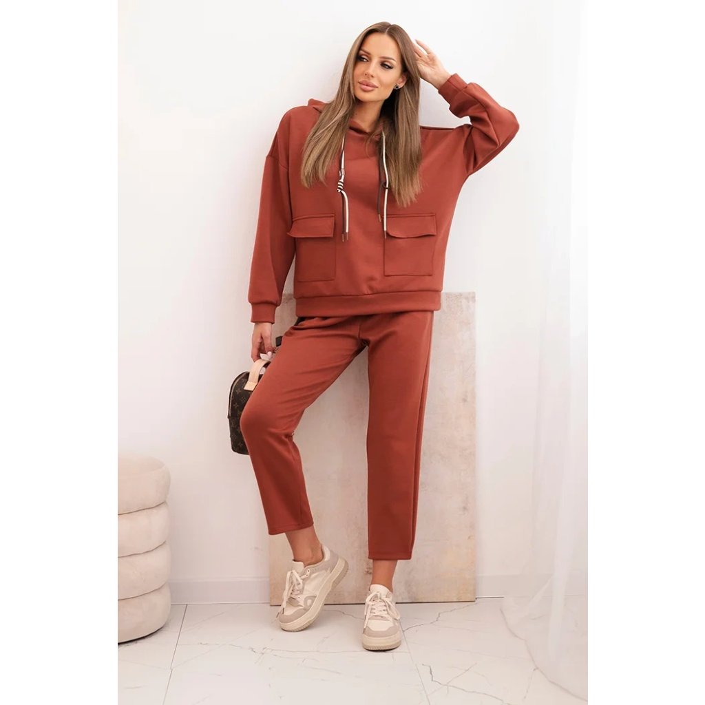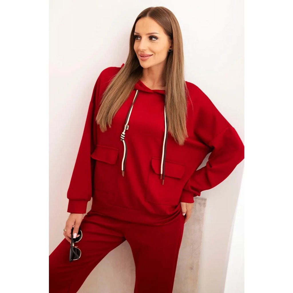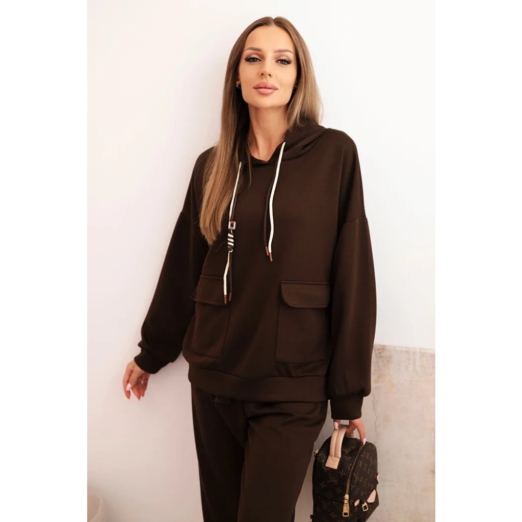 Dámska súprava z maslového materiálu je vynikajúcou voľbou pre ženy, ktoré ocenia pohodlie, módny štýl a vysokú kvalitu. Mikina s kapucňou, veľkými vreckami a voľným strihom zaisťuje plnú slobodu pohybu, zatiaľ čo nohavice s elastickým pásom a látkovým opaskom krásne podčiarkujú pás. Celkovo tvorí výnimočne pohodlnú a ženskú súpravu, ideálnu na každodenné vychádzky, prechádzky alebo relaxáciu doma.
