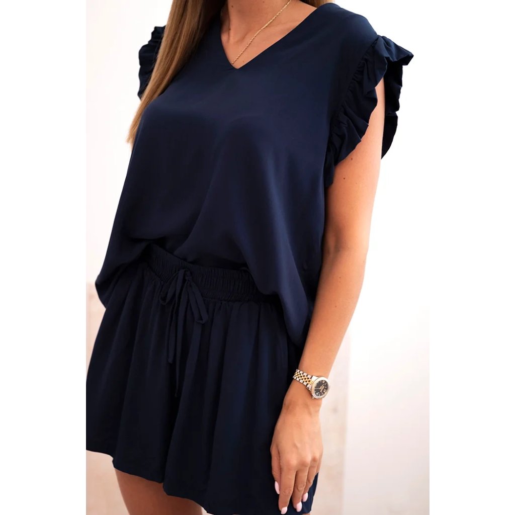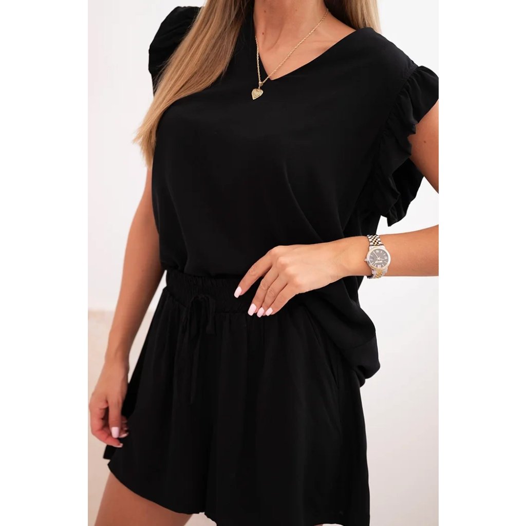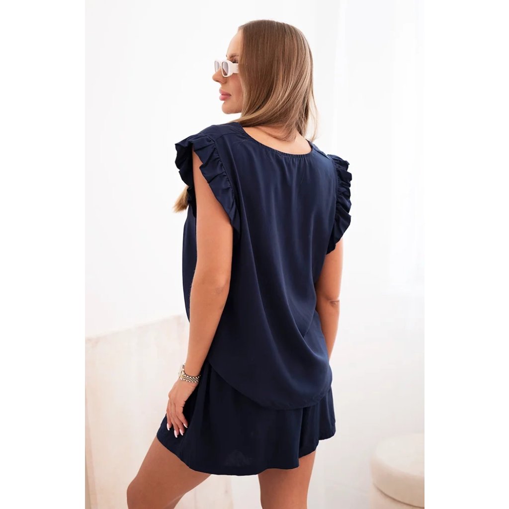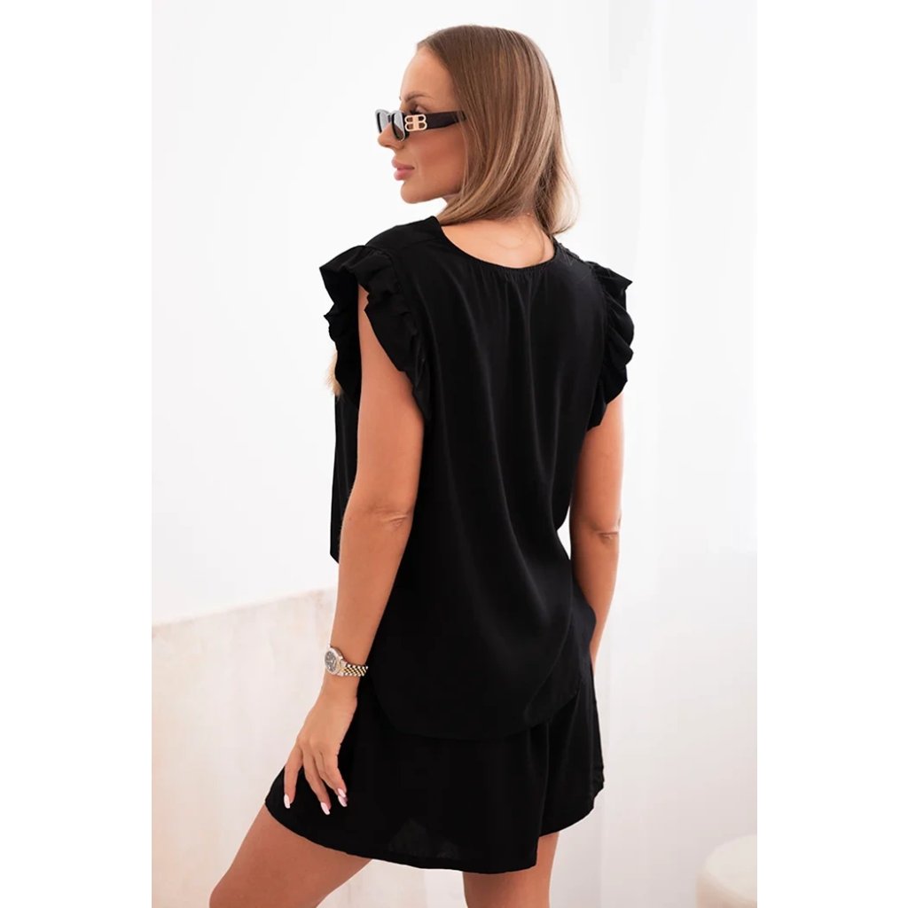 Dámska súprava z viskózy, blúza s volánmi a krátke šortky Jerguš
