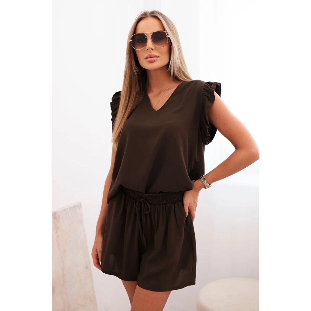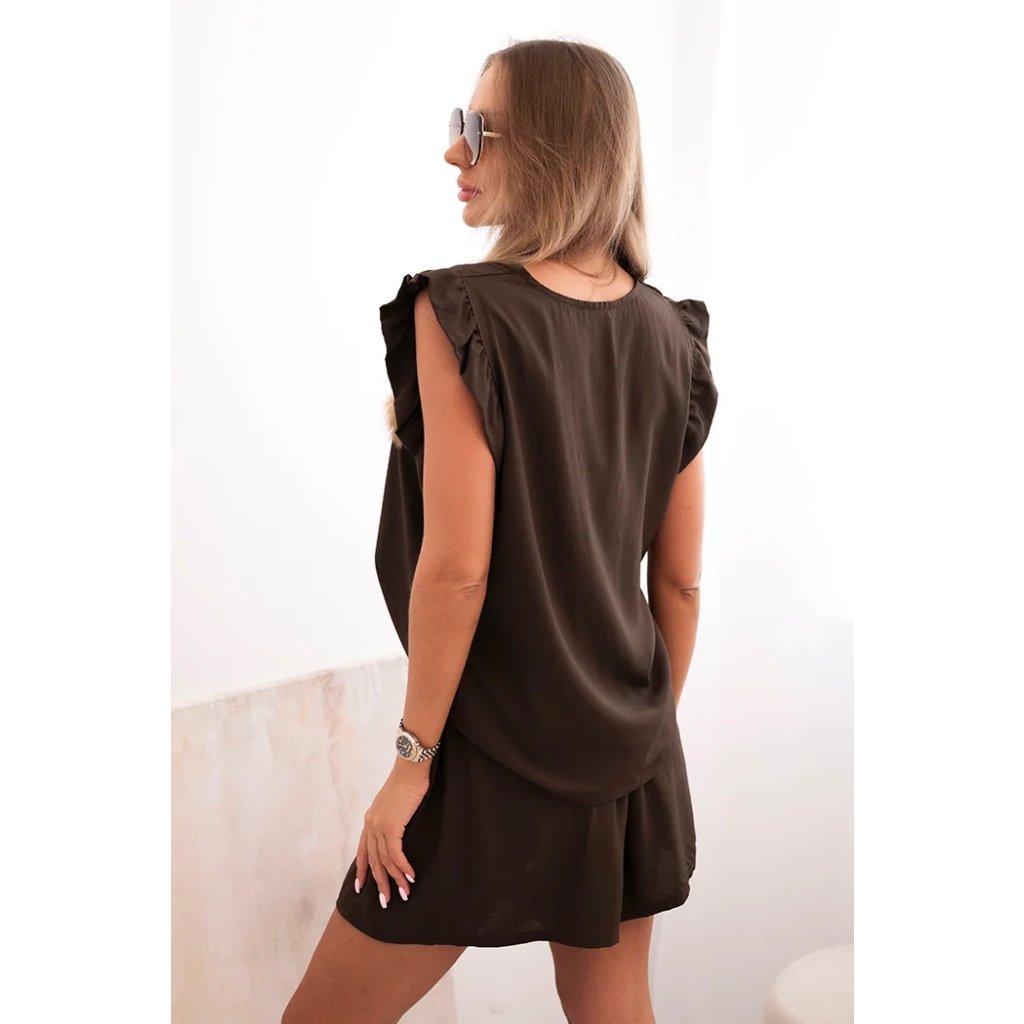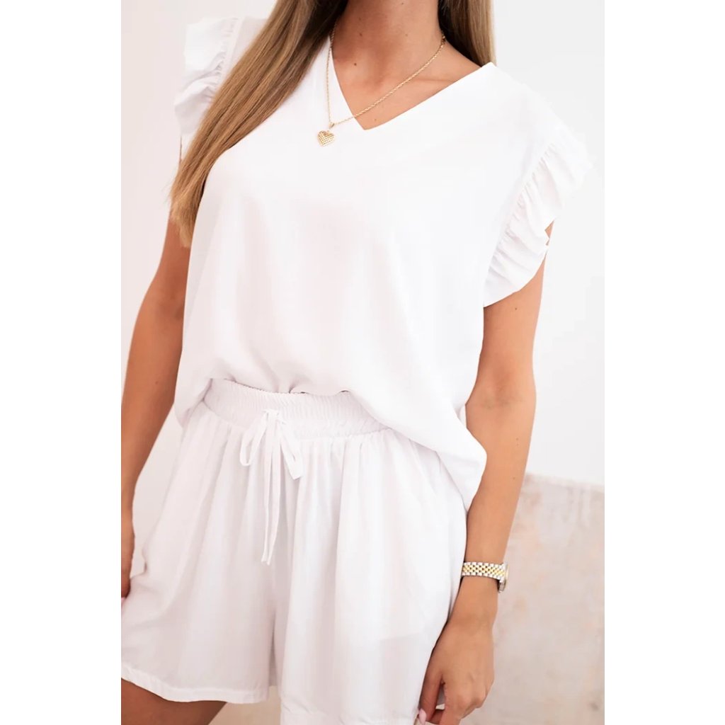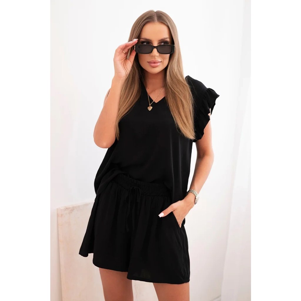 Dámska súprava z viskózy, blúza s volánmi a krátke šortky Jerguš
