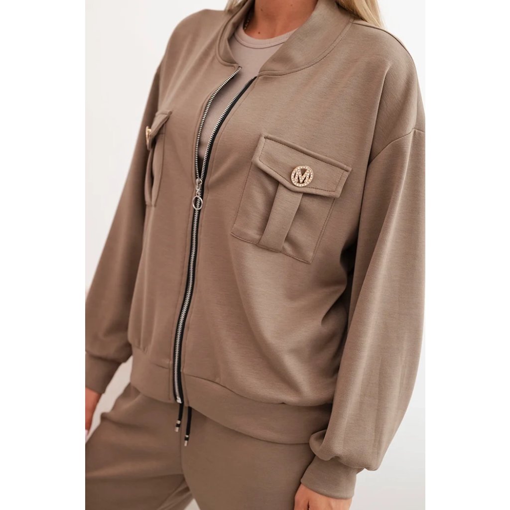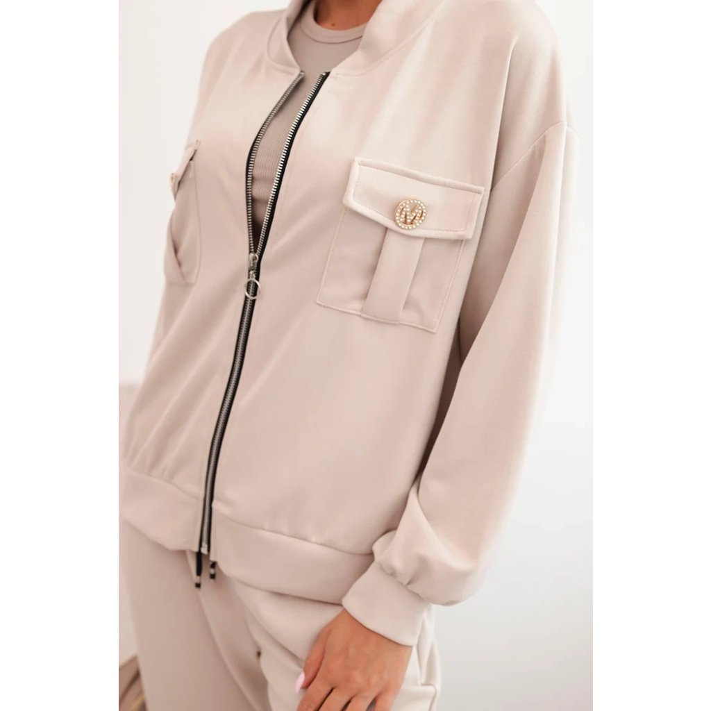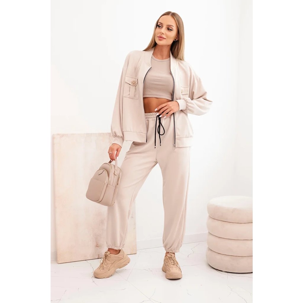 Dámska súprava z viskózy s rozopínacou mikinou a nohavicami maslová Elma