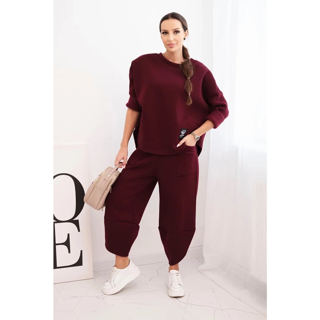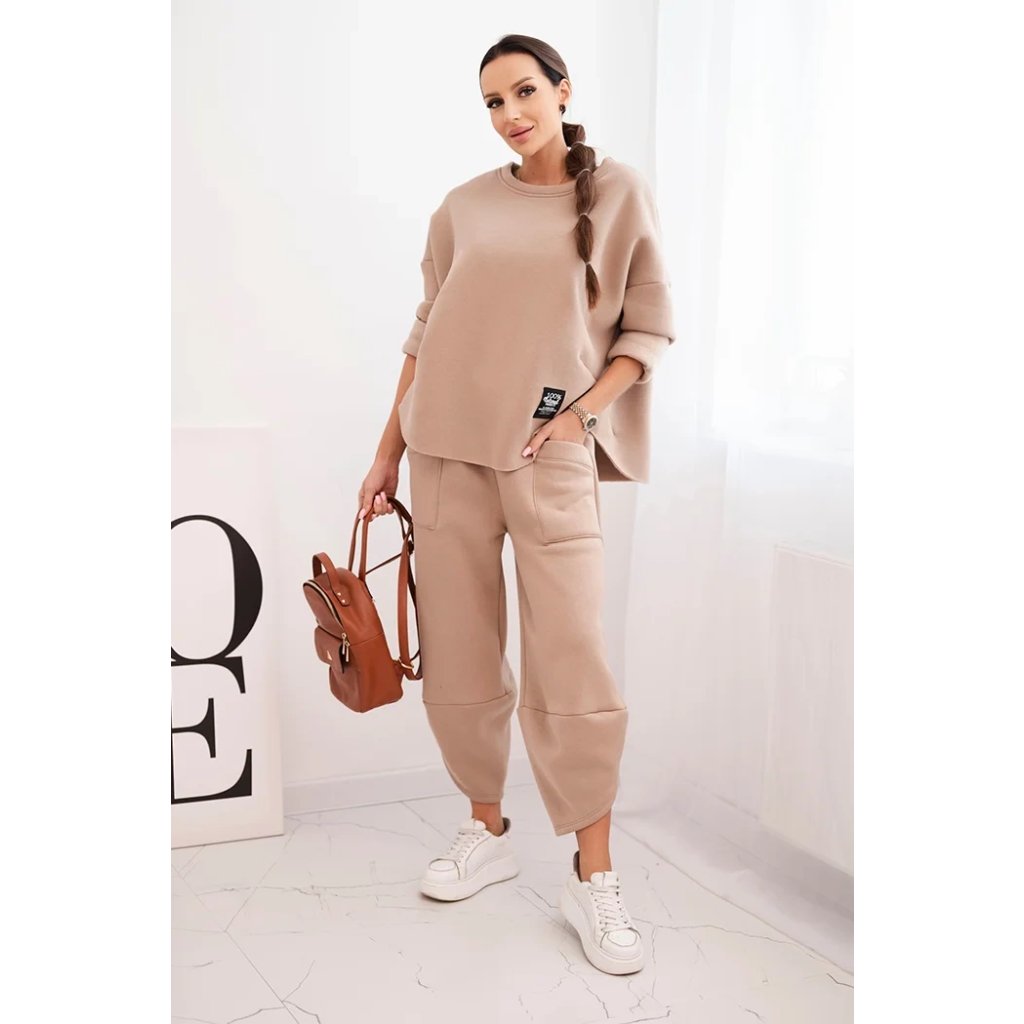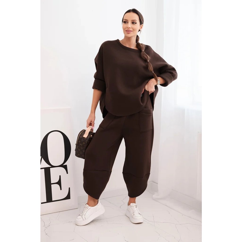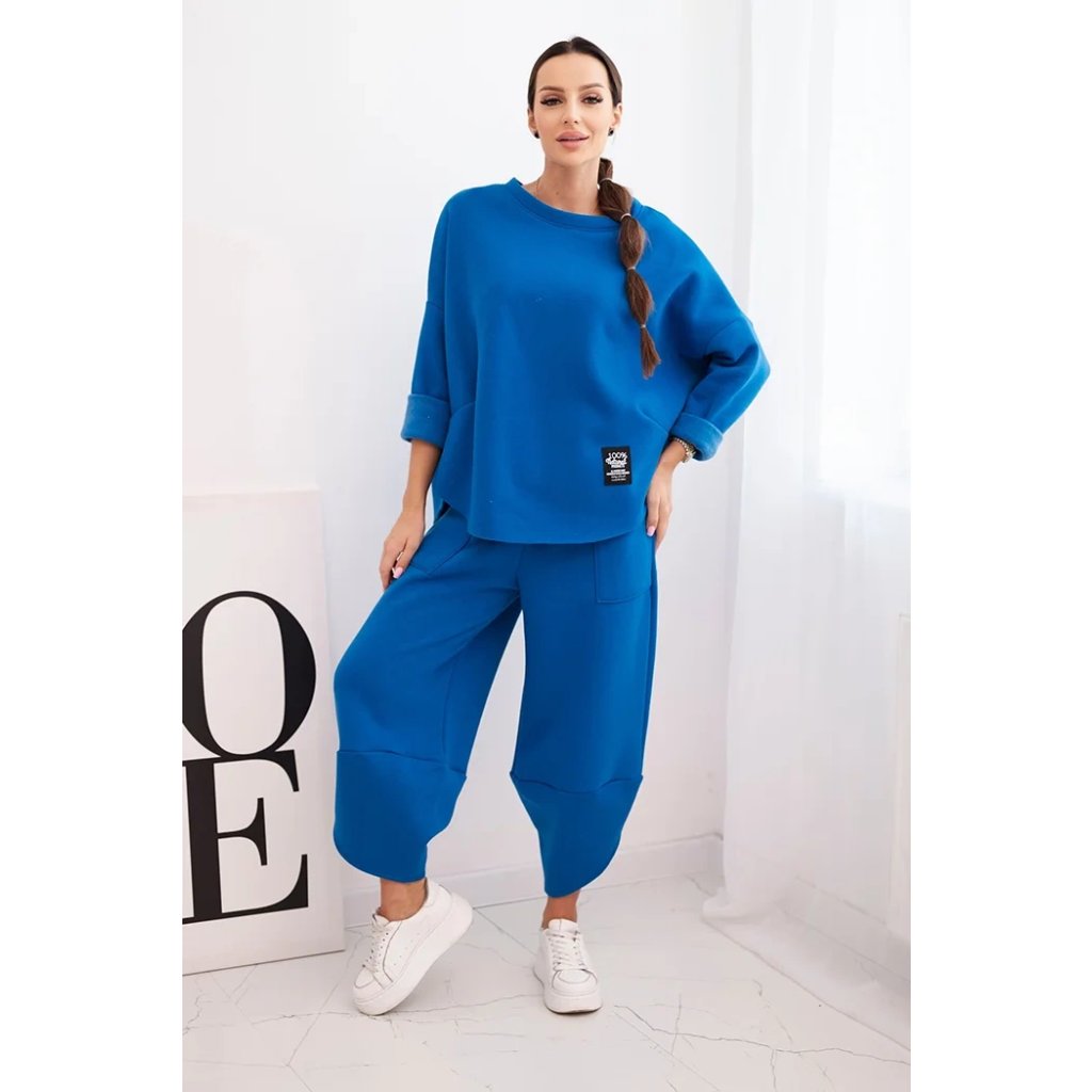 Tento dámsky teplákový set je ideálnou voľbou na chladnejšie dni pre ženy, ktoré si cenia pohodlie a moderný štýl. Súprava sa skladá z voľnej mikiny vo veľkosti oversize a nohavíc so širokými nohavicami, ktoré zaručujú voľnosť pohybu a módny vzhľad. Celé bolo vyrobené zo silnejšieho, masívneho materiálu, ktorý zaisťuje komfort nosenia a ochranu pred chladom.