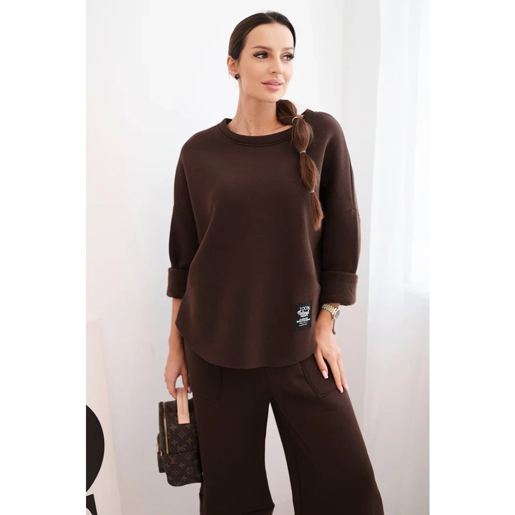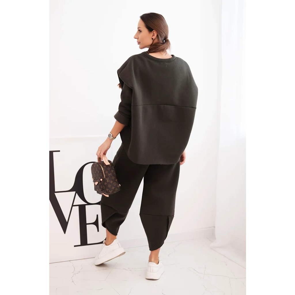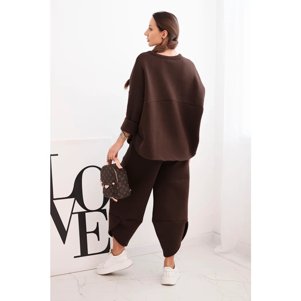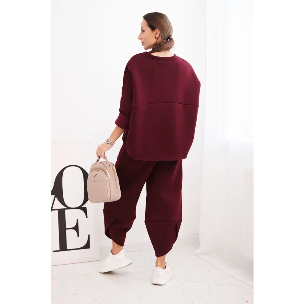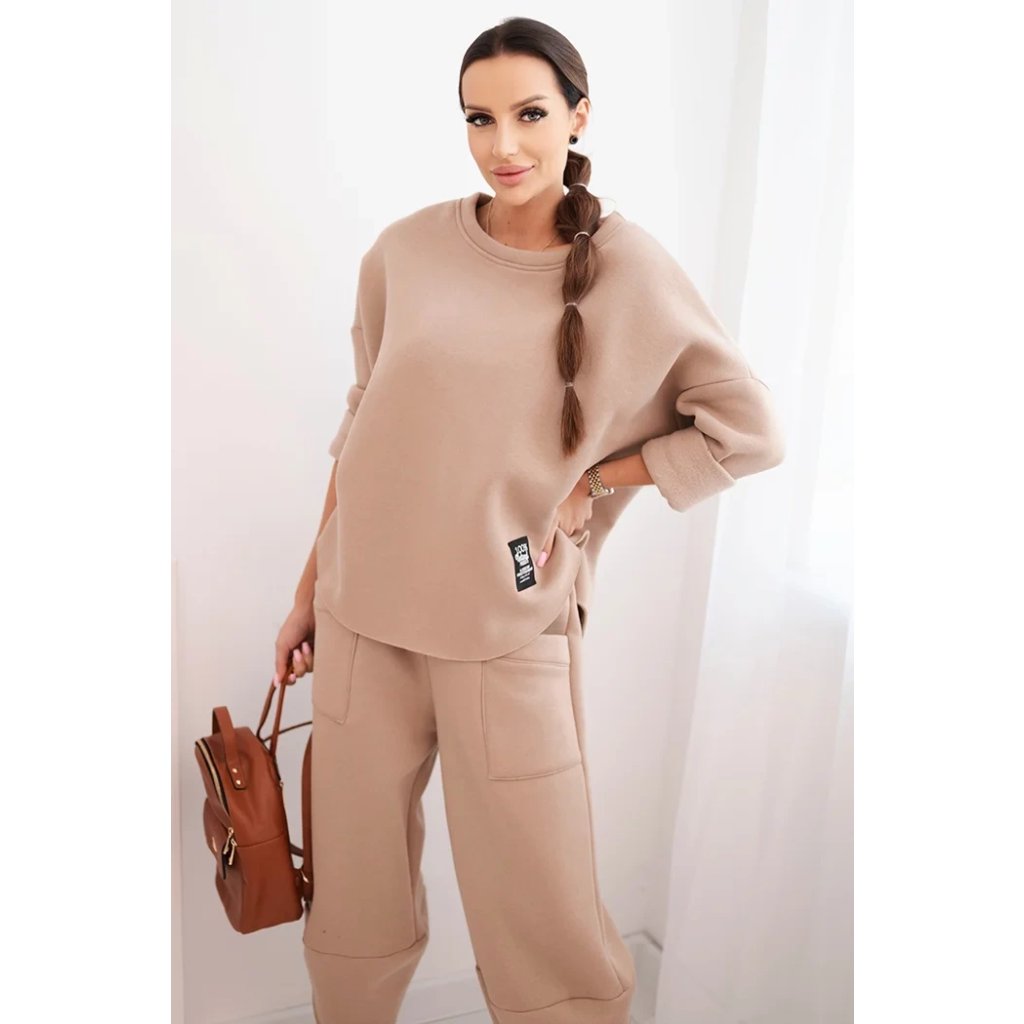 Tento dámsky teplákový set je ideálnou voľbou na chladnejšie dni pre ženy, ktoré si cenia pohodlie a moderný štýl. Súprava sa skladá z voľnej mikiny vo veľkosti oversize a nohavíc so širokými nohavicami, ktoré zaručujú voľnosť pohybu a módny vzhľad. Celé bolo vyrobené zo silnejšieho, masívneho materiálu, ktorý zaisťuje komfort nosenia a ochranu pred chladom.
