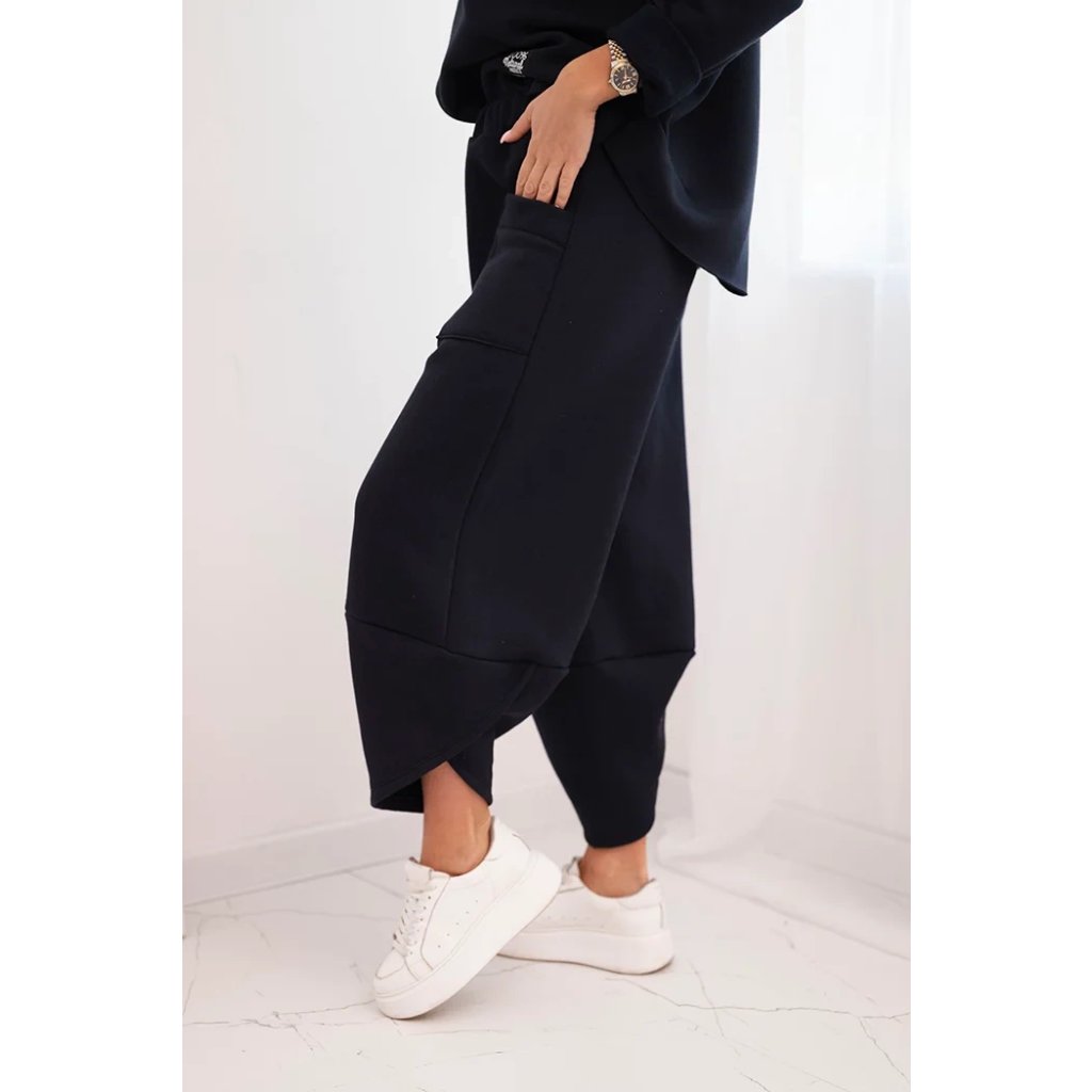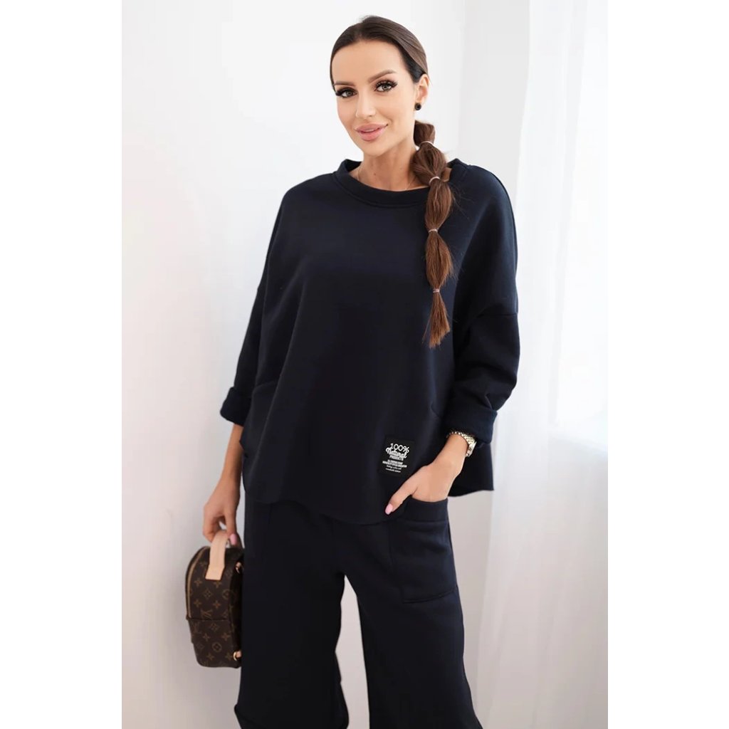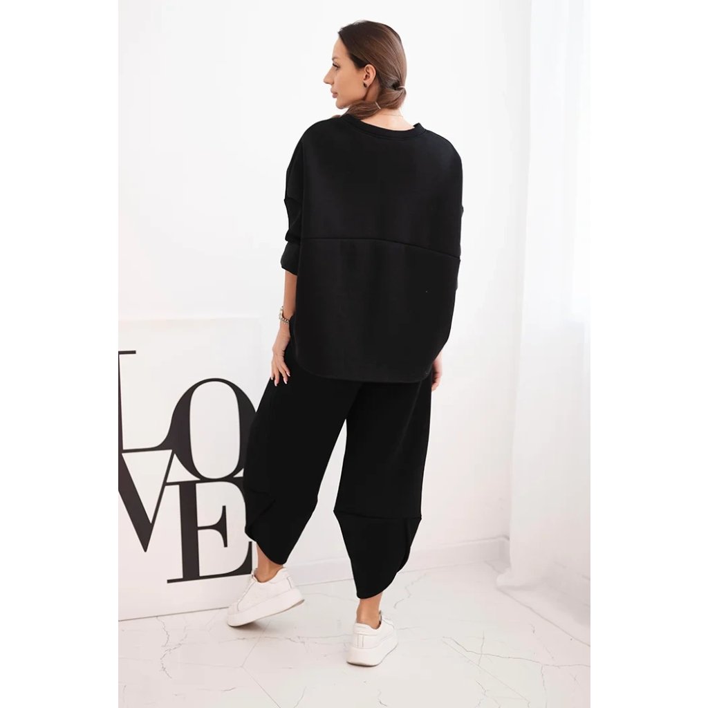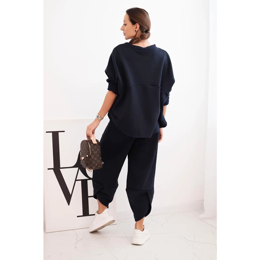 Tento dámsky teplákový set je ideálnou voľbou na chladnejšie dni pre ženy, ktoré si cenia pohodlie a moderný štýl. Súprava sa skladá z voľnej mikiny vo veľkosti oversize a nohavíc so širokými nohavicami, ktoré zaručujú voľnosť pohybu a módny vzhľad. Celé bolo vyrobené zo silnejšieho, masívneho materiálu, ktorý zaisťuje komfort nosenia a ochranu pred chladom.