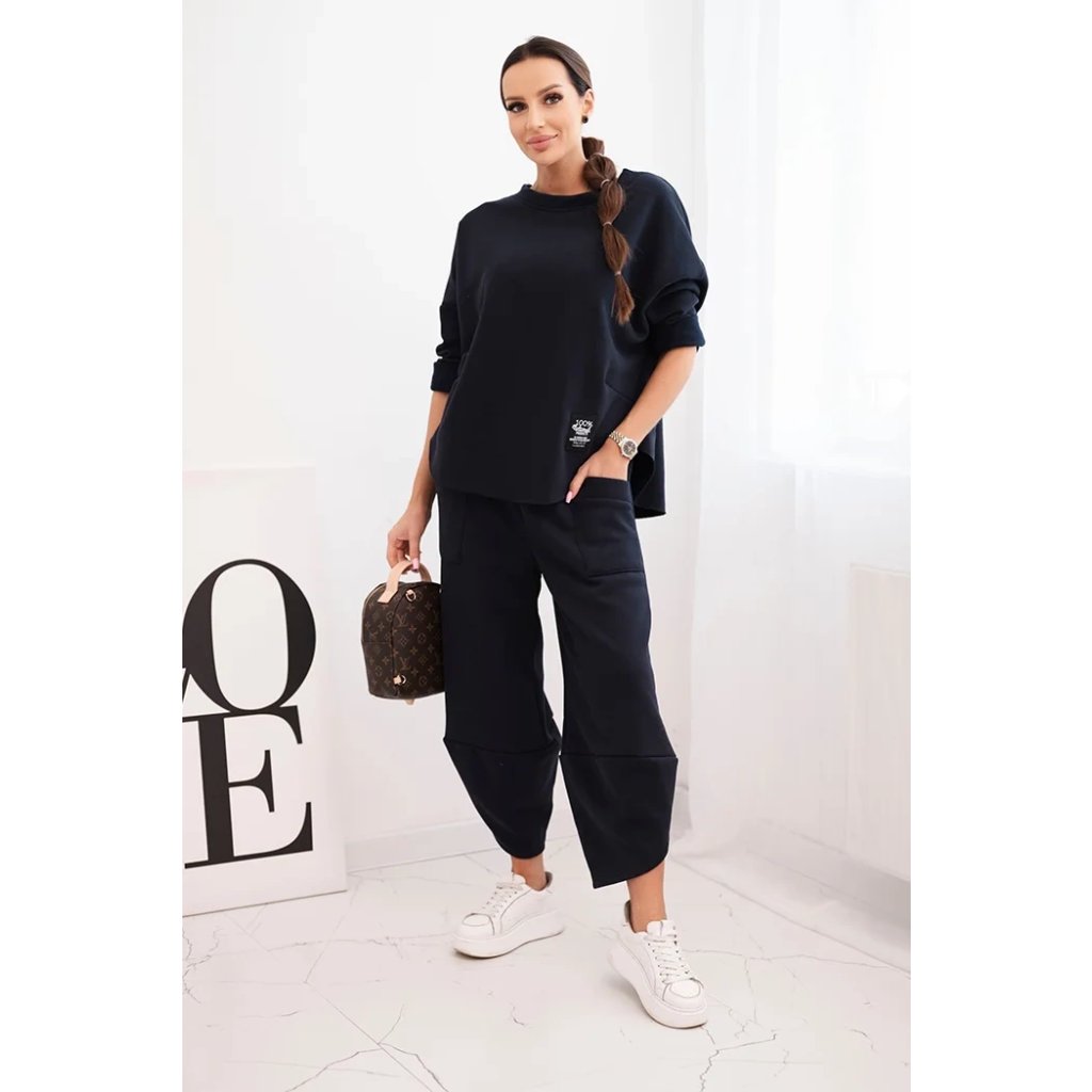 Set sa hodí na každodenné nosenie, na relax doma, ako aj na prechádzky alebo nákupy. Charakteristické veľké vrecká na nohaviciach a znížený krok mu dodávajú moderný, streetwearový charakter. Mikina s okrúhlym výstrihom a spadnutými ramenami zodpovedá aktuálnym módnym trendom.