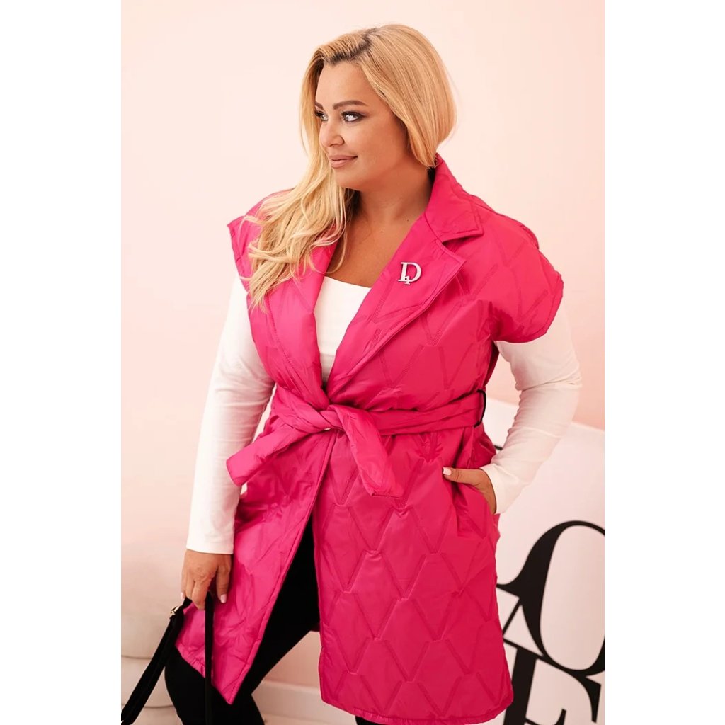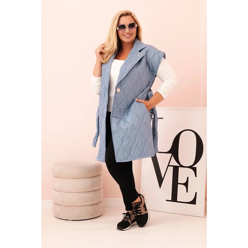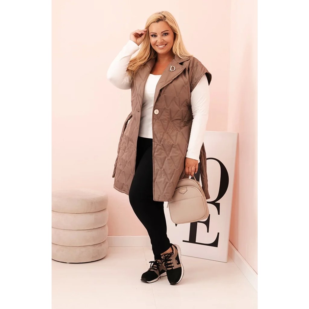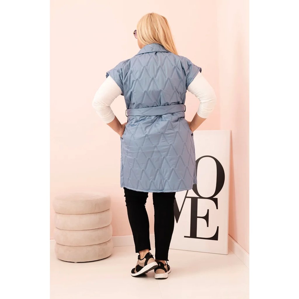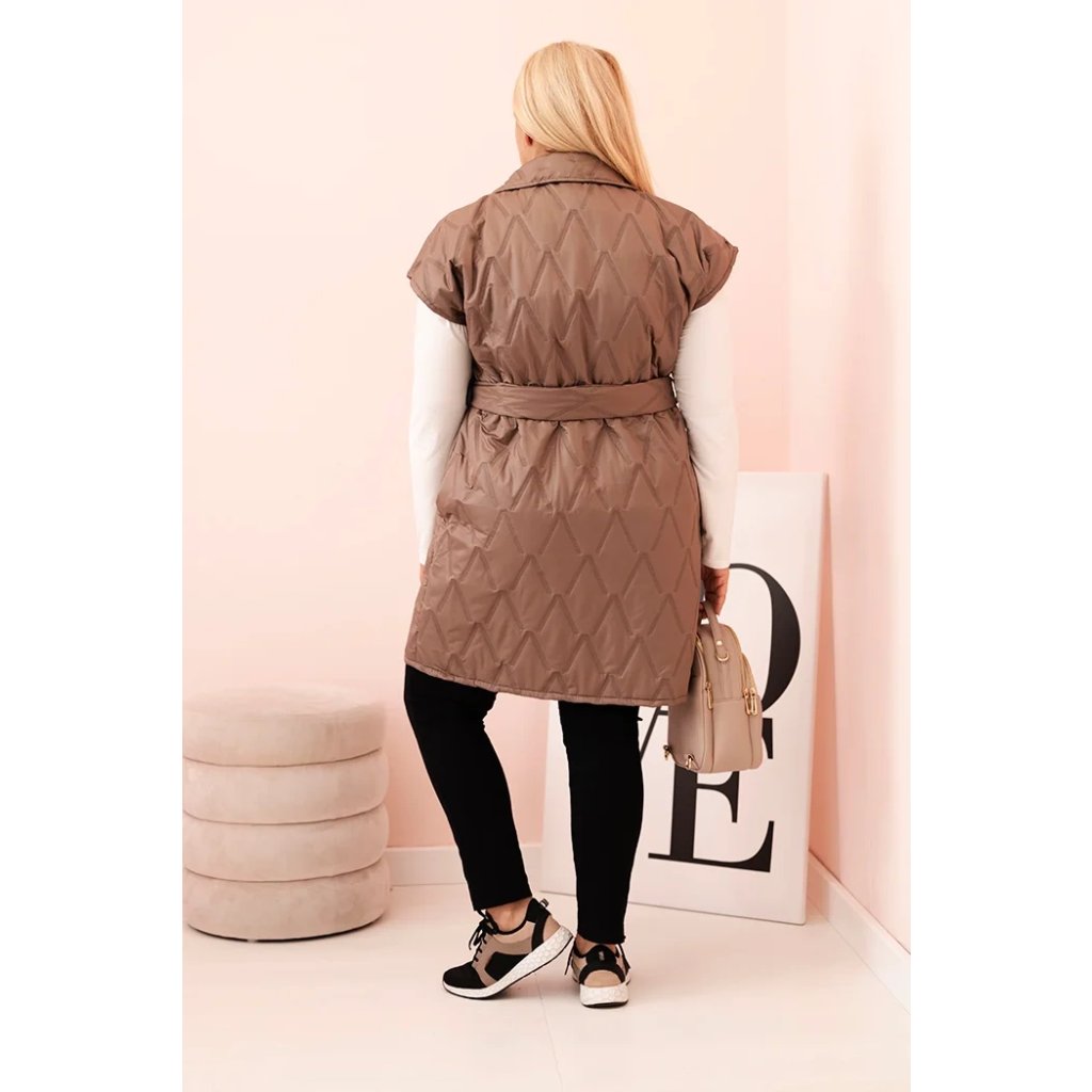 Dámska vesta Plus Size prešívaná s opaskom a golierom