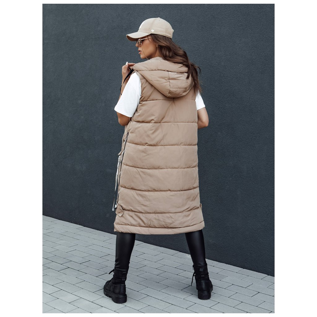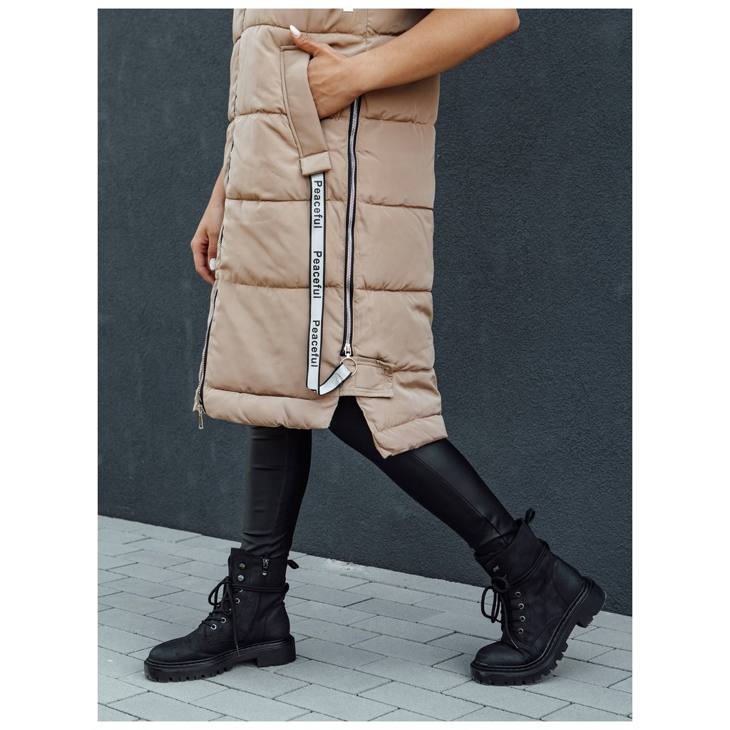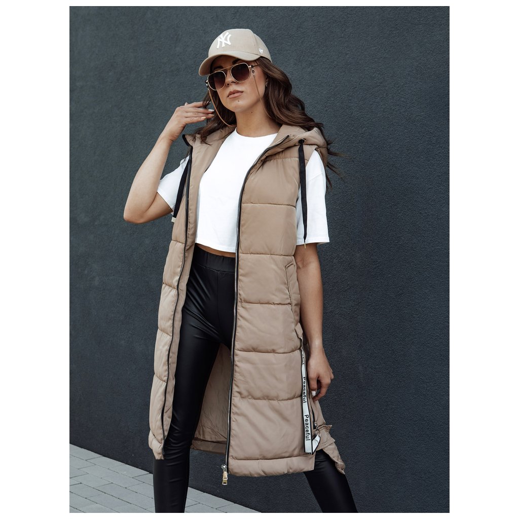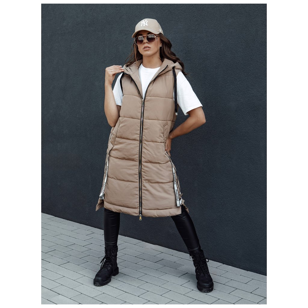 Táto dlhá prešívaná vesta dokonale doplní váš outfit. Vesta sa zapína na zips, má pevnú kapucňu a dve priestranné predné vrecká. Bočný zips umožňuje rozopnúť vestu, čo zvyšuje pohodlie. Je k dispozícii v niekoľkých farbách, takže je to rozhodne MUST HAVE pre nadchádzajúcu sezónu. Vďaka svojej hrejivosti je ideálna na jeseň a zimu.