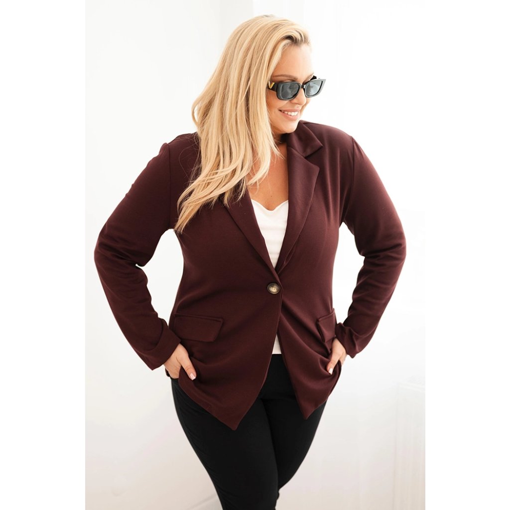 Elegantné a pohodlné dámske sako z viskózy plus size, ktoré dokonale spája štýlový vzhľad s komfortom nosenia. Vyrobené z príjemnej na dotyk zmesi viskózy, polyesteru a elastanu, skvele sa prispôsobí postave, neobmedzuje pohyby a hodí sa ako na každodenné nosenie, tak do práce či na schôdzky. Model zapínaný na jeden gombík, s klasickým golierom a ozdobnými klopami pri vreckách – dodáva šarm každej štylizácii.