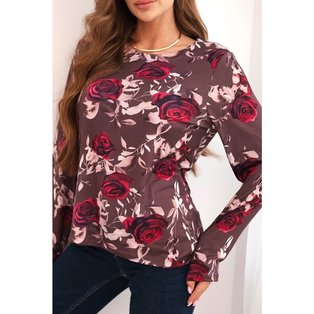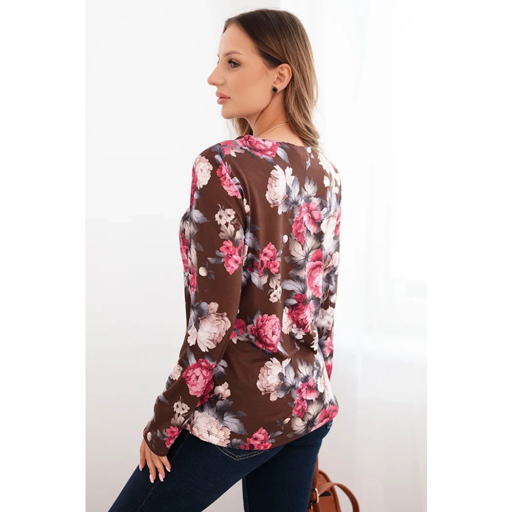 Dámska viskózová kvetinová blúza s dlhým rukávom
