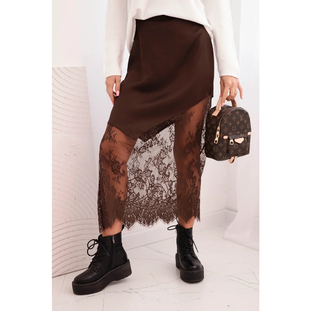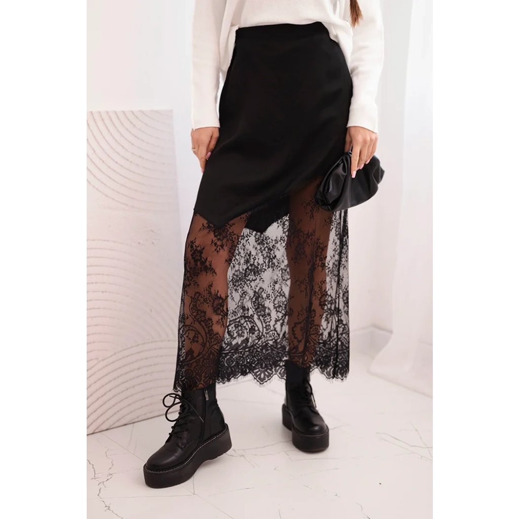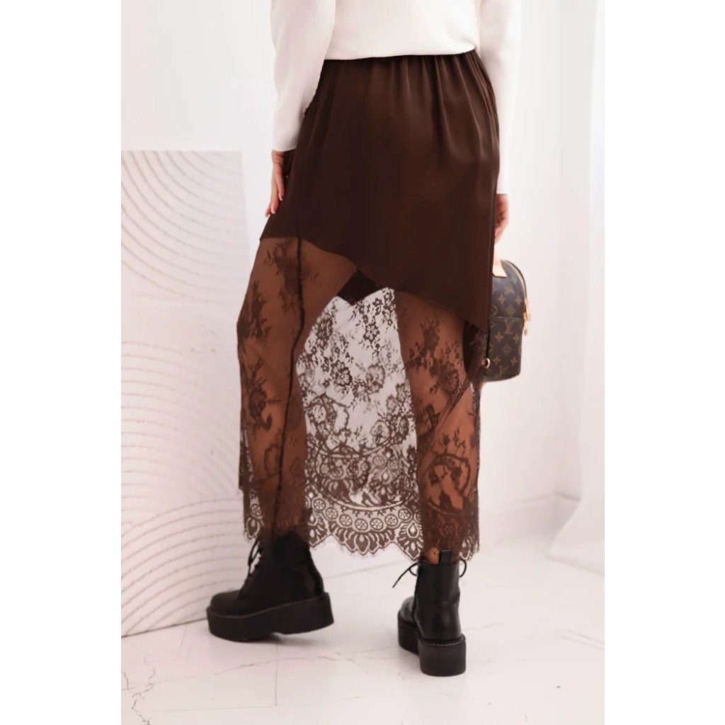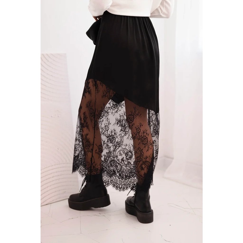 Štýlová a mimoriadne ženská dámska saténová sukňa s čipkou je ideálnou ponukou pre milovníčky elegantného a zároveň pohodlného štýlu. Vyrobená z jemne lesklej viskózy, priťahuje pozornosť subtílnym leskom a efektným zakončením. Jej jedinečný strih s asymetrickým zakončením a spodnou časťou vyrobenou z ozdobnej čipky dodáva celku ľahkosť a romantický charakter.