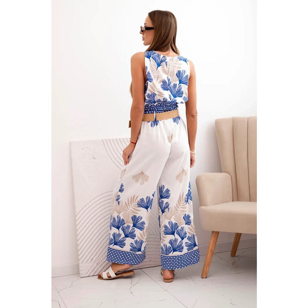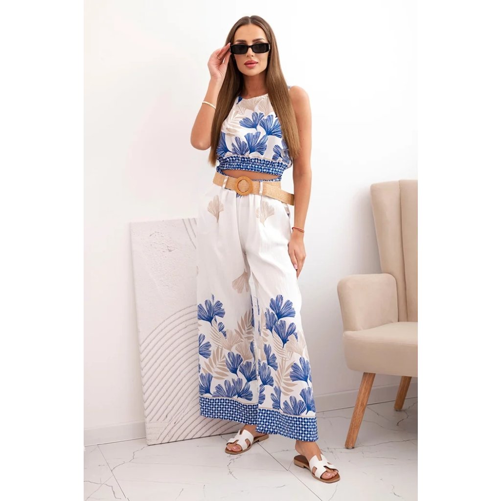Hľadáte štýlovú a pohodlnú letnú súpravu? Dámska súprava top a nohavice so širokými nohavicami je ideálnou voľbou pre teplé dni! Vyrobená z ľahkej a príjemnej viskózy zaručuje pohodlie po celý deň. Jemný rastlinný vzor dodáva celku výnimočný prázdninový charakter. Krátky top s elastickým zakončením v páse skvele zdôrazňuje postavu a dobre sedí na tele. Nohavice so širokými nohavicami a vysokým pásom opticky predlžujú nohy a ozdobný opasok s prírodným zakončením dodáva módny šmrnc. Ideálne na prechádzky, dovolenku, letné výlety alebo každodenné pohodlie v meste.