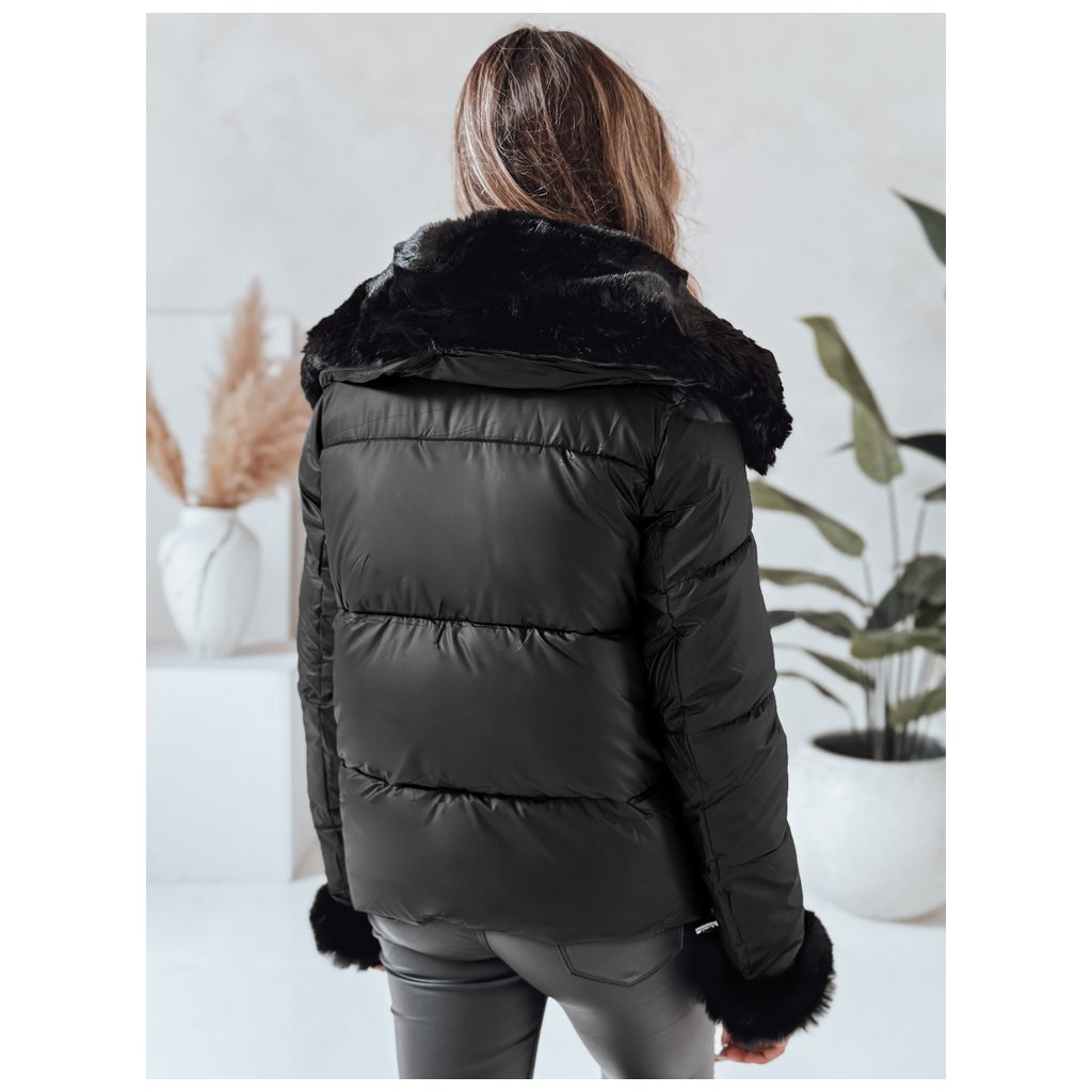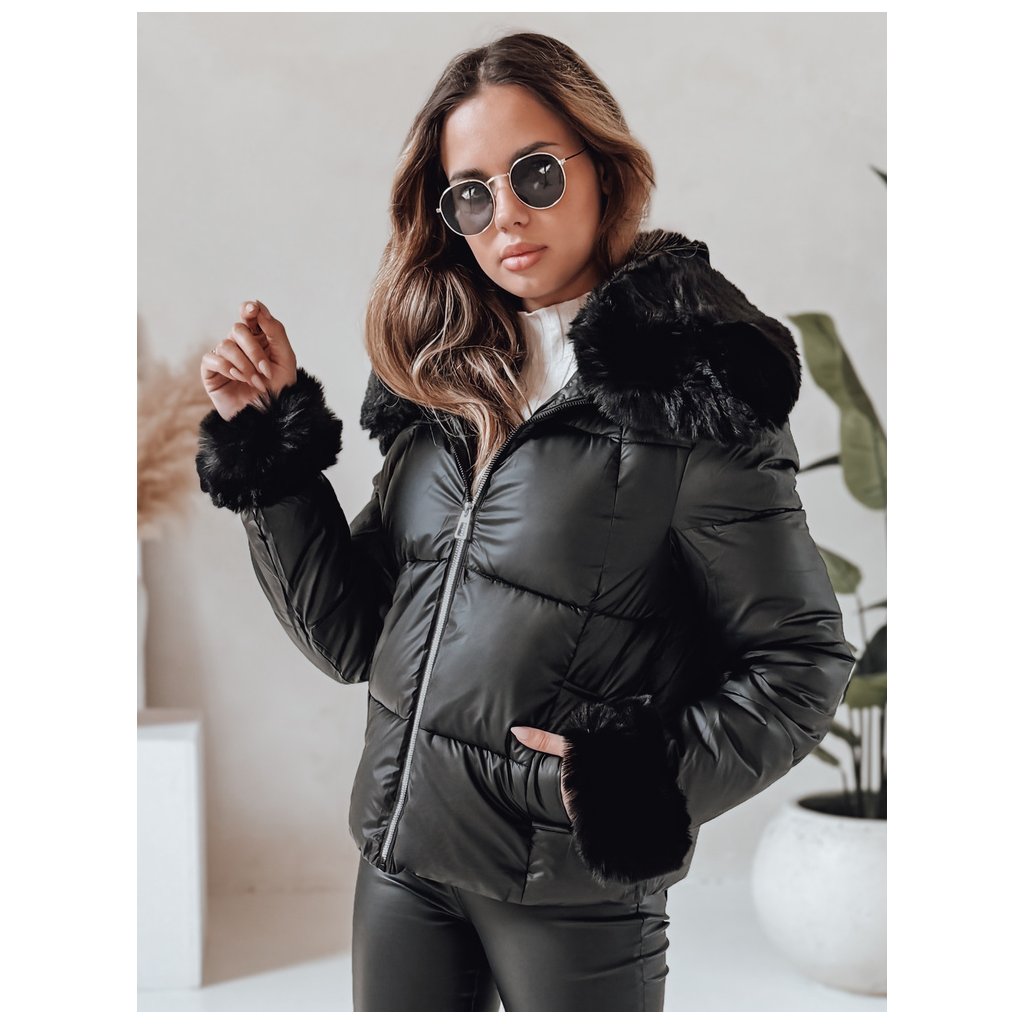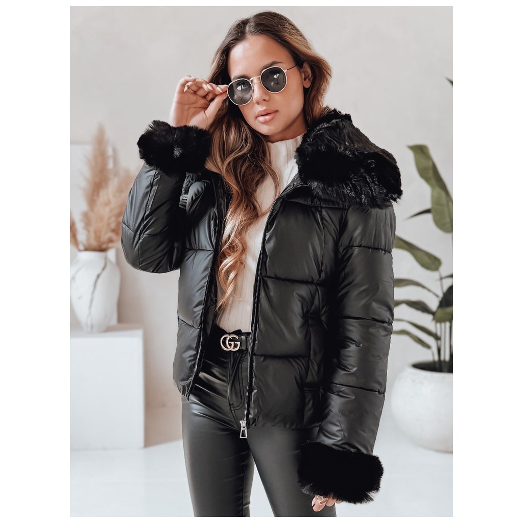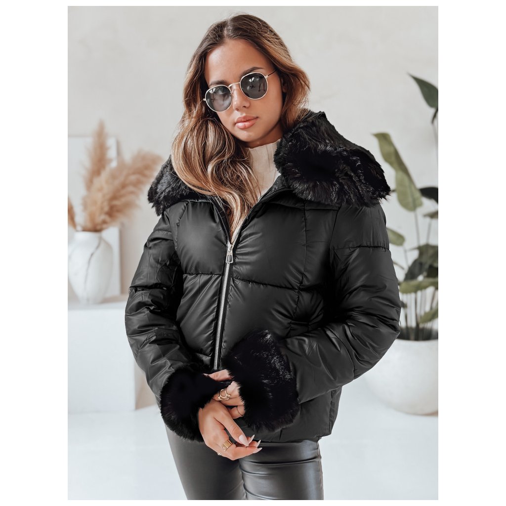 Dámska zimná bunda. Zapínanie na zips. Pevná kapucňa. Odnímateľný kožušinový lem. Dve vonkajšie vrecká. Farba: Čierna. Zloženie: 100% polyester. Miery modelky: